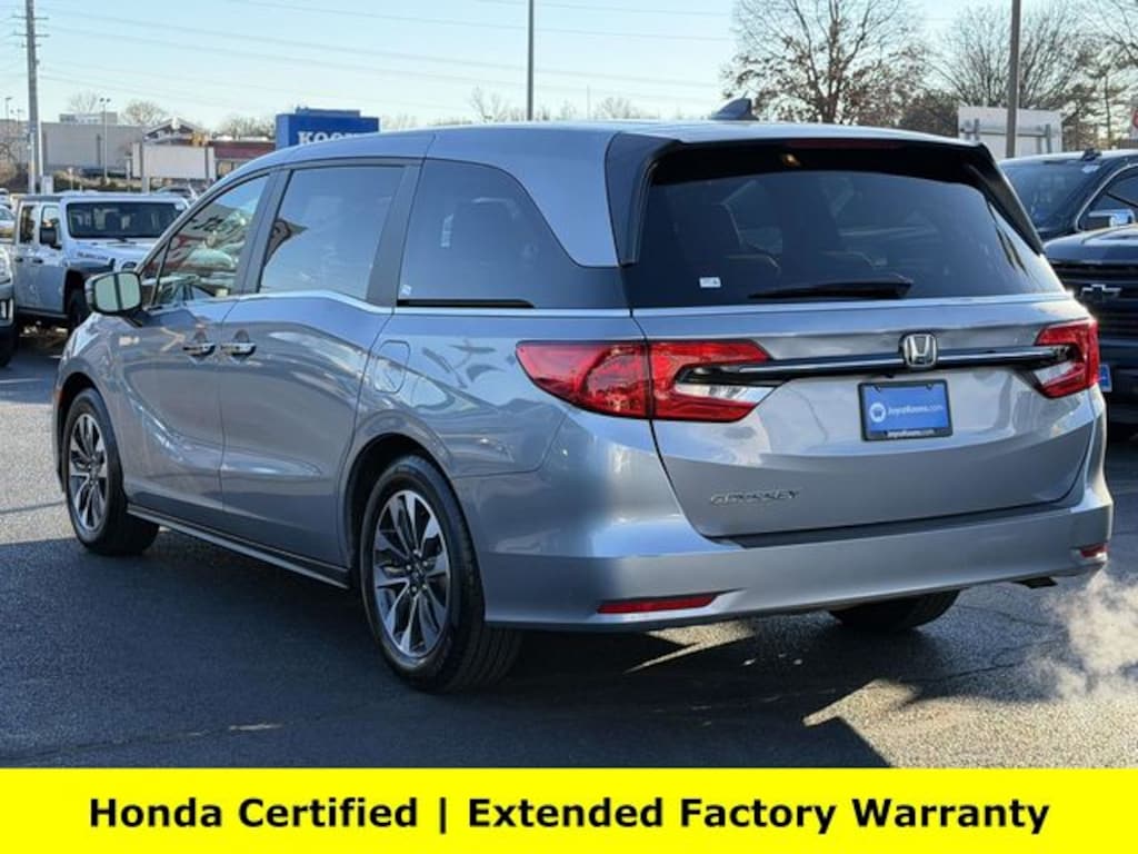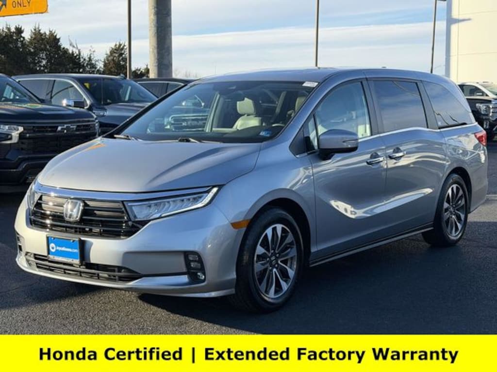 CARFAX One-Owner. Clean CARFAX. Certified. Lunar Silver Metallic 2021 Honda Odyssey EX-L ***ONE OWNER***, ***3RD ROW SEATS***, ***ADAPTIVE CRUISE CONTROL***, ***ALLOY WHEELS***, ***BACK UP CAMERA***, ***DUAL POWER SLIDING DOORS***, ***BLIND SIDE MONITORING***, ***FORWARD COLLISION ALERT***, ***LANE DEPARTURE WARNING***, ***HEATED SEATS***, ***LEATHER***, ***SIRIUS XM RADIO***, ***POWER LIFTGATE***, ***POWER MOONROOF***, ***POWER SEATS***, ***REMOTE START***, HondaTrue Certified Certified, 18" Machine-Finished Alloy Wheels, 3.61 Axle Ratio, 3rd row seats: split-bench, 4-Wheel Disc Brakes, 7 Speakers, A/V remote: CabinControl, ABS brakes, Adaptive Cruise Control: Adaptive Cruise Control (ACC) with Low-Speed Follow, Air Conditioning, Alloy wheels, AM/FM radio: SiriusXM, Anti-whiplash front head restraints, Apple CarPlay/Android Auto, Auto High-beam Headlights, Auto-dimming Rear-View mirror, Automatic temperature control, Blind Spot Information (BSI) System warning, Brake assist, Bumpers: body-color, Delay-off headlights, Driver door bin, Driver vanity mirror, Driver's Seat Mounted Armrest, Dual front impact airbags, Dual front side impact airbags, Electronic Stability Control, Exterior Parking Camera Rear, Forward collision: Collision Mitigation Braking System (CMBS) + FCW mitigation, Four wheel independent suspension, Front anti-roll bar, Front Bucket Seats, Front dual zone A/C, Front fog lights, Front reading lights, Fully automatic headlights, Garage door transmitter: HomeLink, Heated door mirrors, Heated Front Bucket Seats, Heated front seats, Illuminated entry, Knee airbag, Lane departure: Lane Keeping Assist System (LKAS) active, Leather Seat Trim, Leather steering wheel, Low tire pressure warning, Memory seat, Occupant sensing airbag, Outside temperature display, Overhead airbag, Overhead console, Panic alarm, Passenger door bin, Passenger seat mounted armrest, Passenger vanity mirror, Power door mirrors, Power driver seat, Power Liftgate, Power moonroof, Power passenger seat, Power steering, Power windows, Radio data system, Radio: 160-Watt AM/FM/HD/SiriusXM Audio System, Rear air conditioning, Rear anti-roll bar, Rear reading lights, Rear seat center armrest, Rear window defroster, Rear window wiper, Reclining 3rd row seat, Remote keyless entry, Security system, Speed control, Speed-sensing steering, Speed-Sensitive Wipers, Split folding rear seat, Spoiler, Steering wheel mounted audio controls, Tachometer, Telescoping steering wheel, Tilt steering wheel, Traction control, Trip computer, Turn signal indicator mirrors, Variably intermittent wipers.