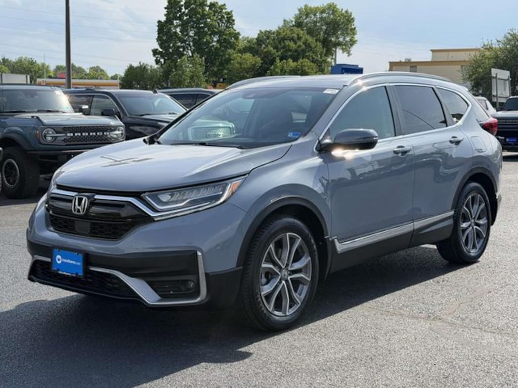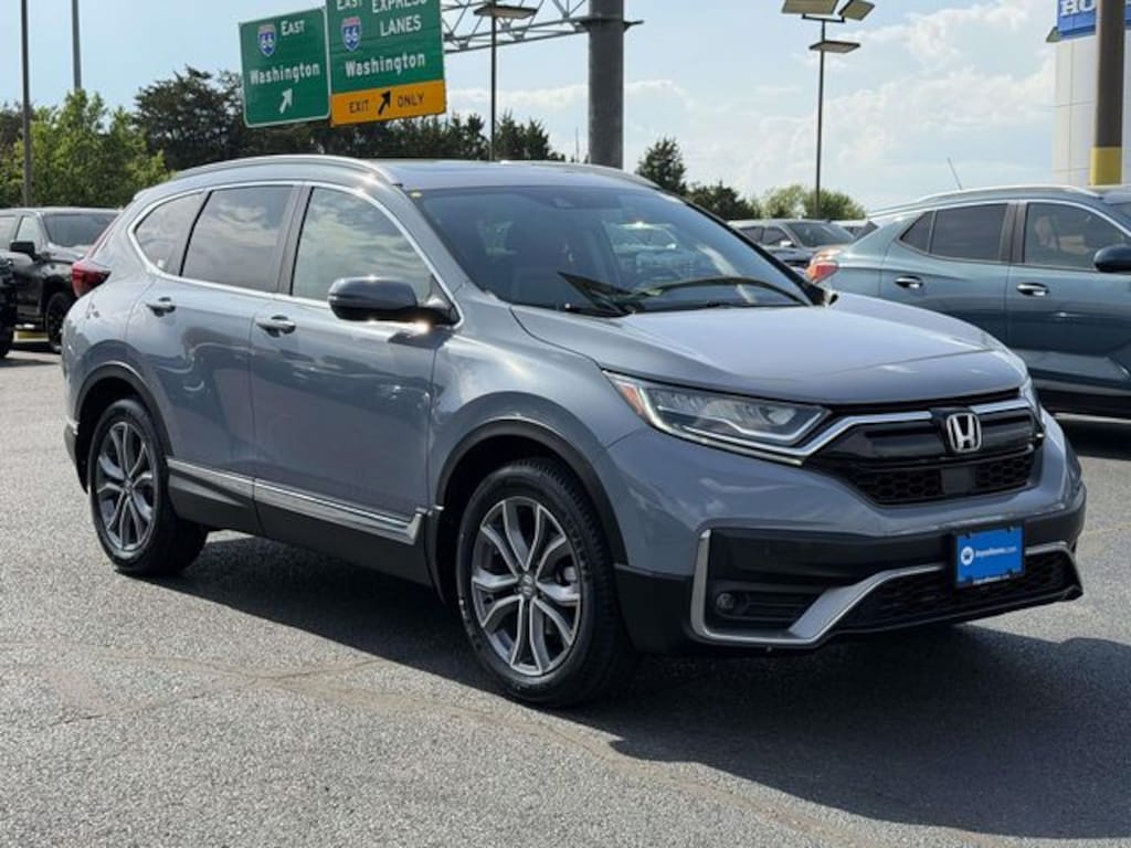 CARFAX One-Owner. Clean CARFAX. Certified. Sonic Gray Pearl 2022 Honda CR-V Touring ***ONE OWNER***, ***LOCAL TRADE***, ***DEALER MAINTAINED***, ***LOADED***, ***ALL WHEEL DRIVE***, ***ADAPTIVE CRUISE CONTROL***, ***ALLOY WHEELS***, ***BACK UP CAMERA***, ***BLIND SIDE MONITORING***, ***FORWARD COLLISION ALERT***, ***LANE DEPARTURE WARNING***, ***HEATED SEATS***, ***LEATHER***, ***SIRIUS XM RADIO***, ***NAVIGATION***, ***POWER LIFTGATE***, ***POWER MOONROOF***, ***POWER SEATS***, ***REMOTE START***, HondaTrue Used Certified, AWD, 4-Wheel Disc Brakes, 5.64 Axle Ratio, 9 Speakers, ABS brakes, Adaptive Cruise Control: Adaptive Cruise Control (ACC) with Low-Speed Follow, Air Conditioning, Alloy wheels, AM/FM radio: SiriusXM, Apple CarPlay/Android Auto, Auto High-beam Headlights, Auto-dimming Rear-View mirror, Automatic temperature control, Blind Spot Information (BSI) System warning, Brake assist, Bumpers: body-color, Compass, Delay-off headlights, Driver door bin, Driver vanity mirror, Dual front impact airbags, Dual front side impact airbags, Electronic Stability Control, Exterior Parking Camera Rear, Forward collision: Collision Mitigation Braking System (CMBS) + FCW mitigation, Four wheel independent suspension, Front anti-roll bar, Front Bucket Seats, Front Center Armrest, Front dual zone A/C, Front fog lights, Front reading lights, Garage door transmitter: HomeLink, Heated door mirrors, Heated Front Bucket Seats, Heated front seats, Heated steering wheel, Illuminated entry, Leather Seat Trim, Leather Shift Knob, Low tire pressure warning, Memory seat, Navigation system: Honda Satellite-Linked Navigation System, Occupant sensing airbag, Outside temperature display, Overhead airbag, Overhead console, Panic alarm, Passenger door bin, Passenger vanity mirror, Power door mirrors, Power driver seat, Power Liftgate, Power moonroof, Power passenger seat, Power steering, Power windows, Radio data system, Radio: 330-Watt AM/FM/HD/SiriusXM Prem Audio System, Rain sensing wipers, Rear anti-roll bar, Rear seat center armrest, Rear window defroster, Rear window wiper, Remote keyless entry, Roof rack: rails only, Security system, Speed control, Speed-sensing steering, Speed-Sensitive Wipers, Split folding rear seat, Spoiler, Steering wheel mounted audio controls, Tachometer, Telescoping steering wheel, Tilt steering wheel, Traction control, Trip computer, Turn signal indicator mirrors, Variably intermittent wipers, Wheels: 19" Machine-Finished Alloy w/Gray Inserts, AWD.