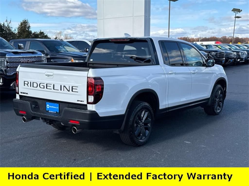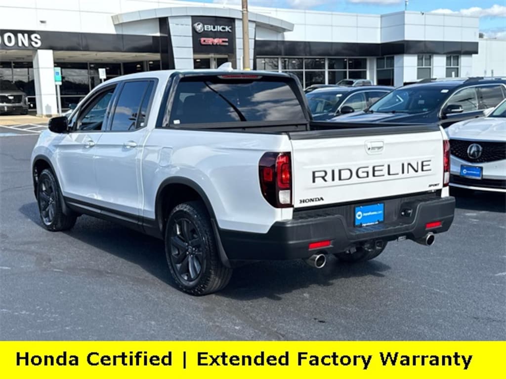 Clean CARFAX. Certified. Platinum White 2024 Honda Ridgeline Sport ***ONE OWNER***, ***LOW MILES***, ***DEALER MAINTAINED***, ***EXCELLENT CONDITION***, ***HONDA CERTIFIED***, ***ALL WHEEL DRIVE***, ***ADAPTIVE CRUISE CONTROL***, ***ALLOY WHEELS***, ***BACK UP CAMERA***, ***BED LINER***, ***BLIND SIDE MONITORING***, ***FORWARD COLLISION ALERT***, ***LANE DEPARTURE WARNING***, ***TOW PACKAGE***, HondaTrue Certified Certified, Black Cloth, Honda Emblem (PPO), Ridgeline Inserts (PPO), Sport Emblem (PPO), Tailgate Blackout Package, 4-Wheel Disc Brakes, 4.33 Axle Ratio, 7 Speakers, ABS brakes, Air Conditioning, Alloy wheels, AM/FM radio, Automatic temperature control, Blind Spot Information (BSI) System warning, Bluetooth® Hands-Free Link, Brake assist, Bumpers: body-color, Cloth Seat Trim, Delay-off headlights, Driver door bin, Driver vanity mirror, Driver's Seat Mounted Armrest, Dual front impact airbags, Dual front side impact airbags, Electronic Stability Control, Emergency communication system: HondaLink Assist, Exterior Parking Camera Rear, Four wheel independent suspension, Front anti-roll bar, Front Bucket Seats, Front dual zone A/C, Front fog lights, Fully automatic headlights, Illuminated entry, Low tire pressure warning, Occupant sensing airbag, Outside temperature display, Overhead airbag, Overhead console, Panic alarm, Passenger door bin, Passenger seat mounted armrest, Passenger vanity mirror, Power door mirrors, Power steering, Power windows, Radio data system, Radio: 215-Watt Audio System w/7 Speakers, Rear air conditioning, Rear anti-roll bar, Rear reading lights, Rear seat center armrest, Rear step bumper, Rear window defroster, Remote keyless entry, Security system, Speed control, Speed-sensing steering, Split folding rear seat, Steering wheel mounted audio controls, Tachometer, Telescoping steering wheel, Tilt steering wheel, Traction control, Trip computer, Variably intermittent wipers, Wheels: 18" Shark Gray Alloy, Wireless Apple CarPlay/Wireless Android Auto, Black Cloth, Honda Emblem (PPO), Ridgeline Inserts (PPO), Sport Emblem (PPO), Tailgate Blackout Package.