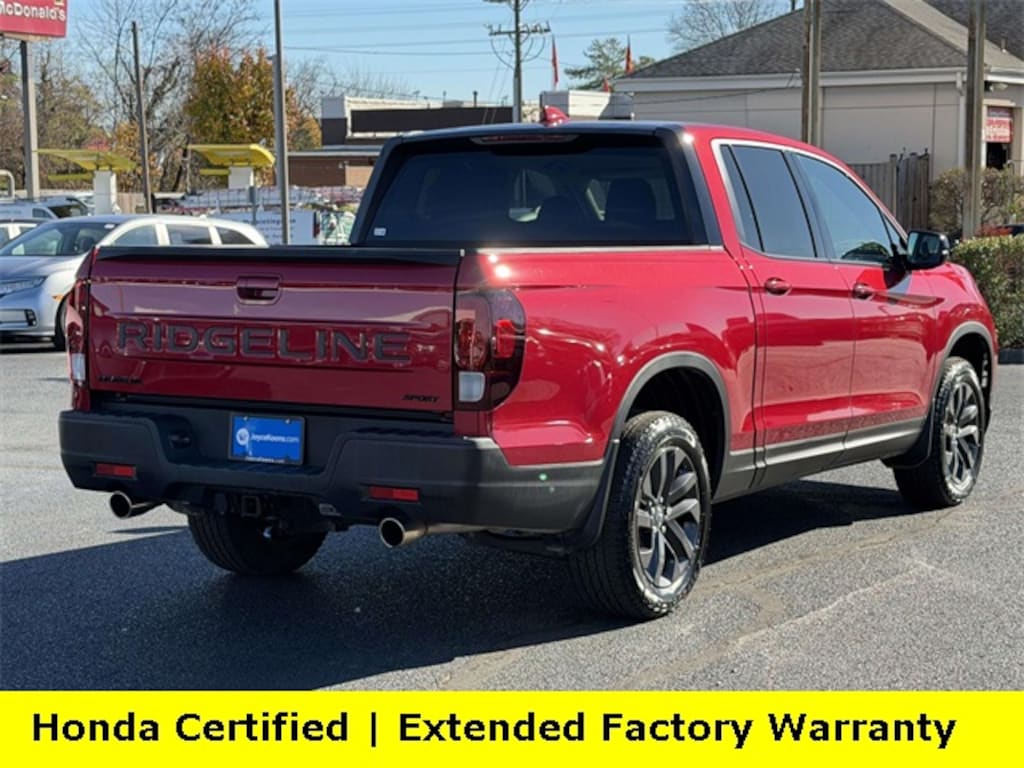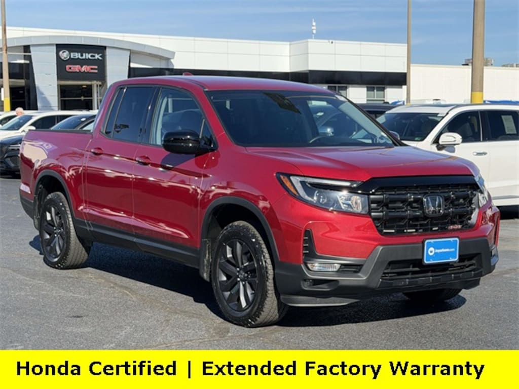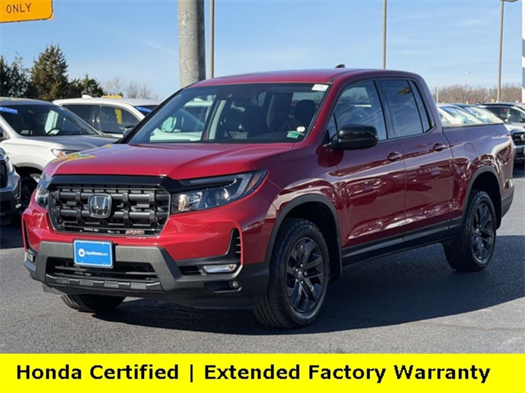 CARFAX One-Owner. Clean CARFAX. Certified. Radiant Red 2024 Honda Ridgeline Sport ***ONE OWNER***, ***LOW MILES***, ***DEALER MAINTAINED***, ***EXCELLENT CONDITION***, ***HONDA CERTIFIED***, ***ALL WHEEL DRIVE***, ***ADAPTIVE CRUISE CONTROL***, ***ALLOY WHEELS***, ***BACK UP CAMERA***, ***BED LINER***, ***BLIND SIDE MONITORING***, ***FORWARD COLLISION ALERT***, ***LANE DEPARTURE WARNING***, ***TOW PACKAGE***, HondaTrue Certified Certified, Black Cloth, Honda Emblem (PPO), Ridgeline Inserts (PPO), Sport Emblem (PPO), Tailgate Blackout Package, 4-Wheel Disc Brakes, 4.33 Axle Ratio, 7 Speakers, ABS brakes, Air Conditioning, Alloy wheels, AM/FM radio, Automatic temperature control, Blind Spot Information (BSI) System warning, Bluetooth® Hands-Free Link, Brake assist, Bumpers: body-color, Cloth Seat Trim, Delay-off headlights, Driver door bin, Driver vanity mirror, Driver's Seat Mounted Armrest, Dual front impact airbags, Dual front side impact airbags, Electronic Stability Control, Emergency communication system: HondaLink Assist, Exterior Parking Camera Rear, Four wheel independent suspension, Front anti-roll bar, Front Bucket Seats, Front dual zone A/C, Front fog lights, Fully automatic headlights, Illuminated entry, Low tire pressure warning, Occupant sensing airbag, Outside temperature display, Overhead airbag, Overhead console, Panic alarm, Passenger door bin, Passenger seat mounted armrest, Passenger vanity mirror, Power door mirrors, Power steering, Power windows, Radio data system, Radio: 215-Watt Audio System w/7 Speakers, Rear air conditioning, Rear anti-roll bar, Rear reading lights, Rear seat center armrest, Rear step bumper, Rear window defroster, Remote keyless entry, Security system, Speed control, Speed-sensing steering, Split folding rear seat, Steering wheel mounted audio controls, Tachometer, Telescoping steering wheel, Tilt steering wheel, Traction control, Trip computer, Variably intermittent wipers, Wheels: 18" Shark Gray Alloy, Wireless Apple CarPlay/Wireless Android Auto, Black Cloth, Honda Emblem (PPO), Ridgeline Inserts (PPO), Sport Emblem (PPO), Tailgate Blackout Package.