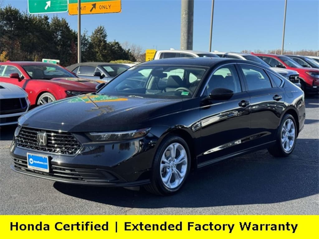 CARFAX One-Owner. Clean CARFAX. Certified. Crystal Black Pearl 2025 Honda Accord LX ***ONE OWNER***, ***LOW MILES***, ***DEALER MAINTAINED***, ***EXCELLENT CONDITION***, ***HONDA CERTIFIED***, ***ADAPTIVE CRUISE CONTROL***, ***ALLOY WHEELS***, ***BACK UP CAMERA***, ***FORWARD COLLISION ALERT***, ***LANE DEPARTURE WARNING***, HondaTrue Certified Certified, Black Cloth, 4 Speakers, 4-Wheel Disc Brakes, ABS brakes, Adaptive Cruise Control: Adaptive Cruise Control (ACC) with Low-Speed Follow, Air Conditioning, Alloy wheels, AM/FM radio, Apple CarPlay/Android Auto, Auto High-beam Headlights, Automatic temperature control, Brake assist, Bumpers: body-color, Compass, Delay-off headlights, Driver door bin, Driver vanity mirror, Dual front impact airbags, Dual front side impact airbags, Electronic Stability Control, Emergency communication system: HondaLink Assist, Exterior Parking Camera Rear, Fabric Seat Trim, Four wheel independent suspension, Front anti-roll bar, Front Bucket Seats, Front Center Armrest, Front reading lights, Fully automatic headlights, Illuminated entry, Knee airbag, Lane departure: Lane Keeping Assist System (LKAS) active, Low tire pressure warning, Occupant sensing airbag, Outside temperature display, Overhead airbag, Overhead console, Panic alarm, Passenger door bin, Passenger vanity mirror, Power door mirrors, Power steering, Power windows, Radio data system, Radio: 160-Watt Audio System, Rear anti-roll bar, Rear reading lights, Rear seat center armrest, Rear side impact airbag, Rear window defroster, Remote keyless entry, Security system, Speed control, Speed-sensing steering, Speed-Sensitive Wipers, Steering wheel mounted audio controls, Tachometer, Telescoping steering wheel, Tilt steering wheel, Traction control, Trip computer, Variably intermittent wipers, Wheels: 17" x 7.5J Blade Silver, Black Cloth.