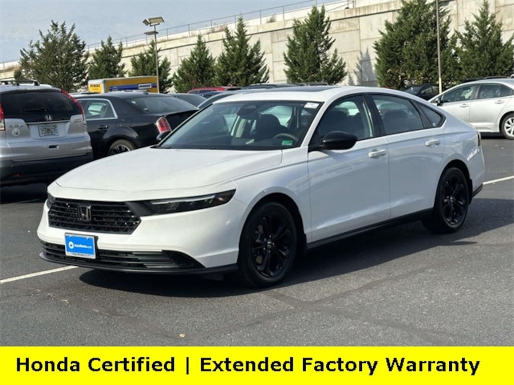Clean CARFAX. Certified. Platinum White Pearl 2025 Honda Accord SE ***ONE OWNER***, ***LOW MILES***, ***DEALER MAINTAINED***, ***EXCELLENT CONDITION***, ***HONDA CERTIFIED***, ***ADAPTIVE CRUISE CONTROL***, ***ALLOY WHEELS***, ***BACK UP CAMERA***, ***BLIND SIDE MONITORING***, ***FORWARD COLLISION ALERT***, ***LANE DEPARTURE WARNING***, ***HEATED SEATS***, ***POWER MOONROOF***, ***POWER SEAT***, ***REMOTE START***, HondaTrue Certified Certified, Black Cloth, 4-Wheel Disc Brakes, 8 Speakers, ABS brakes, Adaptive Cruise Control: Adaptive Cruise Control (ACC) with Low-Speed Follow, Air Conditioning, Alloy wheels, AM/FM radio, Apple CarPlay/Android Auto, Auto High-beam Headlights, Automatic temperature control, Blind Spot Information (BSI) System warning, Brake assist, Bumpers: body-color, Compass, Delay-off headlights, Driver door bin, Driver vanity mirror, Dual front impact airbags, Dual front side impact airbags, Electronic Stability Control, Emergency communication system: HondaLink Assist, Exterior Parking Camera Rear, Fabric Seat Trim, Four wheel independent suspension, Front anti-roll bar, Front Bucket Seats, Front Center Armrest, Front dual zone A/C, Front reading lights, Fully automatic headlights, Heated door mirrors, Heated Front Bucket Seats, Heated front seats, Illuminated entry, Knee airbag, Lane departure: Lane Keeping Assist System (LKAS) active, Low tire pressure warning, Occupant sensing airbag, Outside temperature display, Overhead airbag, Overhead console, Panic alarm, Passenger door bin, Passenger vanity mirror, Power door mirrors, Power driver seat, Power moonroof, Power steering, Power windows, Radio data system, Radio: 180-Watt Audio System, Rear anti-roll bar, Rear reading lights, Rear seat center armrest, Rear side impact airbag, Rear window defroster, Remote keyless entry, Security system, Speed control, Speed-sensing steering, Speed-Sensitive Wipers, Split folding rear seat, Steering wheel mounted audio controls, Tachometer, Telescoping steering wheel, Tilt steering wheel, Traction control, Trip computer, Variably intermittent wipers, Wheels: 17" x 7.5J Berlina Black, Black Cloth.