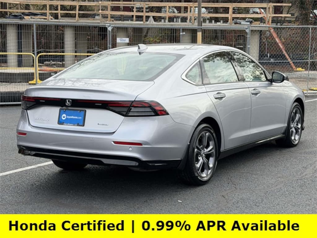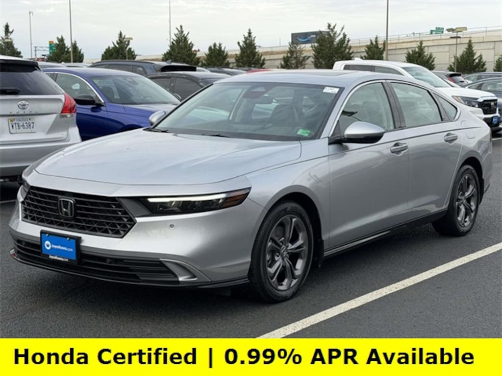 CARFAX One-Owner. Clean CARFAX. Certified. Solar Silver Metallic 2025 Honda Accord Hybrid EX-L ***ONE OWNER***, ***LOW MILES***, ***DEALER MAINTAINED***, ***EXCELLENT CONDITION***, ***HONDA CERTIFIED***, ***ADAPTIVE CRUISE CONTROL***, ***ALLOY WHEELS***, ***BACK UP CAMERA***, ***BLIND SIDE MONITORING***, ***FORWARD COLLISION ALERT***, ***LANE DEPARTURE WARNING***, ***HEATED SEATS***, ***LEATHER***, ***POWER MOONROOF***, ***POWER SEATS***, ***REMOTE START***, HondaTrue Certified Certified, 2.0L I4 DOHC 16V, 4-Wheel Disc Brakes, 8 Speakers, ABS brakes, Adaptive Cruise Control: Adaptive Cruise Control (ACC) with Low-Speed Follow, Air Conditioning, Alloy wheels, AM/FM radio, Apple CarPlay/Android Auto, Auto High-beam Headlights, Auto-dimming Rear-View mirror, Automatic temperature control, Blind Spot Information (BSI) System warning, Brake assist, Bumpers: body-color, Compass, Delay-off headlights, Driver door bin, Driver vanity mirror, Dual front impact airbags, Dual front side impact airbags, Electronic Stability Control, Emergency communication system: HondaLink, Exterior Parking Camera Rear, Four wheel independent suspension, Front anti-roll bar, Front Bucket Seats, Front Center Armrest, Front dual zone A/C, Front reading lights, Fully automatic headlights, Heated door mirrors, Heated Front Bucket Seats, Heated front seats, Illuminated entry, Knee airbag, Lane departure: Lane Keeping Assist System (LKAS) active, Leather Shift Knob, Leather steering wheel, Leather-Trimmed Seat Trim, Low tire pressure warning, Memory seat, Occupant sensing airbag, Outside temperature display, Overhead airbag, Overhead console, Panic alarm, Passenger door bin, Passenger vanity mirror, Power door mirrors, Power driver seat, Power moonroof, Power passenger seat, Power steering, Power windows, Radio data system, Radio: 180-Watt Audio System, Rear anti-roll bar, Rear reading lights, Rear seat center armrest, Rear side impact airbag, Rear window defroster, Remote keyless entry, Security system, Speed control, Speed-sensing steering, Speed-Sensitive Wipers, Split folding rear seat, Steering wheel mounted audio controls, Telescoping steering wheel, Tilt steering wheel, Traction control, Trip computer, Turn signal indicator mirrors, Variably intermittent wipers, Wheels: 17" x 7.5J Pewter Gray, 2.0L I4 DOHC 16V.