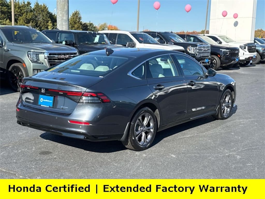 Clean CARFAX. Certified. Meteorite Gray Metallic 2025 Honda Accord Hybrid EX-L ***ONE OWNER***, ***LOW MILES***, ***DEALER MAINTAINED***, ***EXCELLENT CONDITION***, ***HONDA CERTIFIED***, ***ADAPTIVE CRUISE CONTROL***, ***ALLOY WHEELS***, ***BACK UP CAMERA***, ***BLIND SIDE MONITORING***, ***FORWARD COLLISION ALERT***, ***LANE DEPARTURE WARNING***, ***HEATED SEATS***, ***LEATHER***, ***POWER MOONROOF***, ***POWER SEATS***, ***REMOTE START***, HondaTrue Certified Certified, 2.0L I4 DOHC 16V, 4-Wheel Disc Brakes, 8 Speakers, ABS brakes, Adaptive Cruise Control: Adaptive Cruise Control (ACC) with Low-Speed Follow, Air Conditioning, Alloy wheels, AM/FM radio, Apple CarPlay/Android Auto, Auto High-beam Headlights, Auto-dimming Rear-View mirror, Automatic temperature control, Blind Spot Information (BSI) System warning, Brake assist, Bumpers: body-color, Compass, Delay-off headlights, Driver door bin, Driver vanity mirror, Dual front impact airbags, Dual front side impact airbags, Electronic Stability Control, Emergency communication system: HondaLink, Exterior Parking Camera Rear, Four wheel independent suspension, Front anti-roll bar, Front Bucket Seats, Front Center Armrest, Front dual zone A/C, Front reading lights, Fully automatic headlights, Heated door mirrors, Heated Front Bucket Seats, Heated front seats, Illuminated entry, Knee airbag, Lane departure: Lane Keeping Assist System (LKAS) active, Leather Shift Knob, Leather steering wheel, Leather-Trimmed Seat Trim, Low tire pressure warning, Memory seat, Occupant sensing airbag, Outside temperature display, Overhead airbag, Overhead console, Panic alarm, Passenger door bin, Passenger vanity mirror, Power door mirrors, Power driver seat, Power moonroof, Power passenger seat, Power steering, Power windows, Radio data system, Radio: 180-Watt Audio System, Rear anti-roll bar, Rear reading lights, Rear seat center armrest, Rear side impact airbag, Rear window defroster, Remote keyless entry, Security system, Speed control, Speed-sensing steering, Speed-Sensitive Wipers, Split folding rear seat, Steering wheel mounted audio controls, Telescoping steering wheel, Tilt steering wheel, Traction control, Trip computer, Turn signal indicator mirrors, Variably intermittent wipers, Wheels: 17" x 7.5J Pewter Gray, 2.0L I4 DOHC 16V.