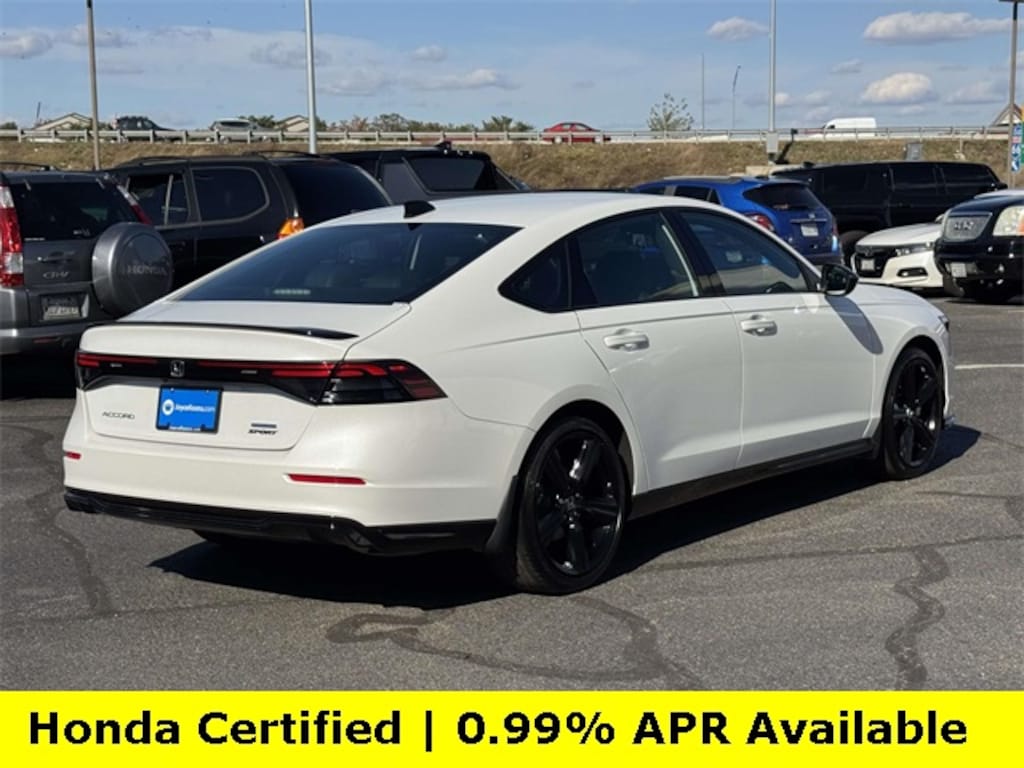 CARFAX One-Owner. Clean CARFAX. Certified. Platinum White Pearl 2025 Honda Accord Hybrid Sport-L ***ONE OWNER***, ***LOW MILES***, ***DEALER MAINTAINED***, ***EXCELLENT CONDITION***, ***HONDA CERTIFIED***, ***ADAPTIVE CRUISE CONTROL***, ***ALLOY WHEELS***, ***BACK UP CAMERA***, ***BLIND SIDE MONITORING***, ***FORWARD COLLISION ALERT***, ***LANE DEPARTURE WARNING***, ***HEATED SEATS***, ***LEATHER***, ***POWER MOONROOF***, ***POWER SEATS***, ***REMOTE START***, HondaTrue Certified Certified, 2.0L I4 DOHC 16V, 4-Wheel Disc Brakes, 8 Speakers, ABS brakes, Adaptive Cruise Control: Adaptive Cruise Control (ACC) with Low-Speed Follow, Air Conditioning, Alloy wheels, AM/FM radio, Apple CarPlay/Android Auto, Auto High-beam Headlights, Automatic temperature control, Blind Spot Information (BSI) System warning, Brake assist, Bumpers: body-color, Compass, Delay-off headlights, Driver door bin, Driver vanity mirror, Dual front impact airbags, Dual front side impact airbags, Electronic Stability Control, Emergency communication system: HondaLink, Exterior Parking Camera Rear, Four wheel independent suspension, Front anti-roll bar, Front Bucket Seats, Front Center Armrest, Front dual zone A/C, Front reading lights, Fully automatic headlights, Heated Front Bucket Seats, Heated front seats, Illuminated entry, Knee airbag, Lane departure: Lane Keeping Assist System (LKAS) active, Leather Shift Knob, Leather steering wheel, Leather-Trimmed Seat Trim, Low tire pressure warning, Memory seat, Occupant sensing airbag, Outside temperature display, Overhead airbag, Overhead console, Panic alarm, Passenger door bin, Passenger vanity mirror, Power door mirrors, Power driver seat, Power moonroof, Power passenger seat, Power steering, Power windows, Radio data system, Radio: 180-Watt Audio System, Rear anti-roll bar, Rear reading lights, Rear seat center armrest, Rear side impact airbag, Rear window defroster, Remote keyless entry, Security system, Speed control, Speed-sensing steering, Speed-Sensitive Wipers, Split folding rear seat, Spoiler, Steering wheel mounted audio controls, Telescoping steering wheel, Tilt steering wheel, Traction control, Trip computer, Variably intermittent wipers, Wheels: 19" x 8.5J Matte Berlina Black, 2.0L I4 DOHC 16V.