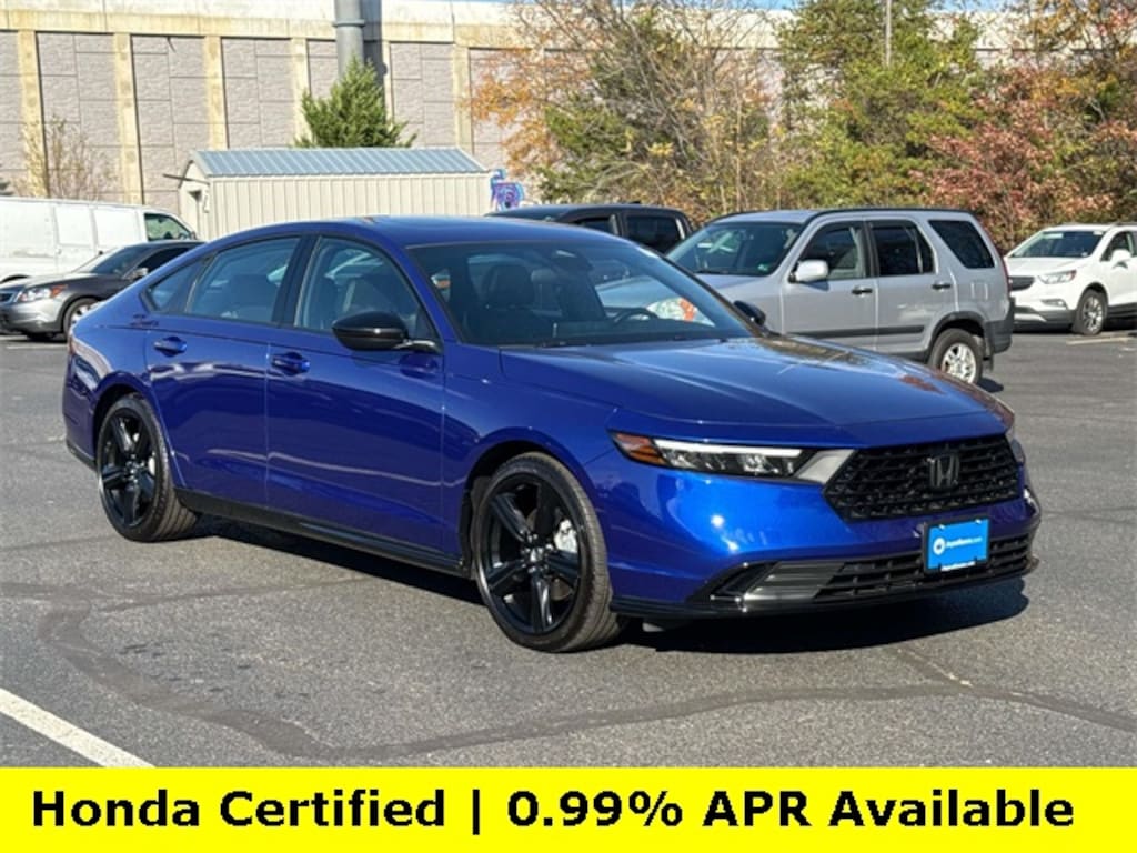 CARFAX One-Owner. Clean CARFAX. Certified. Still Night Pearl 2025 Honda Accord Hybrid Sport-L ***ONE OWNER***, ***LOW MILES***, ***DEALER MAINTAINED***, ***EXCELLENT CONDITION***, ***HONDA CERTIFIED***, ***ADAPTIVE CRUISE CONTROL***, ***ALLOY WHEELS***, ***BACK UP CAMERA***, ***BLIND SIDE MONITORING***, ***FORWARD COLLISION ALERT***, ***LANE DEPARTURE WARNING***, ***HEATED SEATS***, ***LEATHER***, ***POWER MOONROOF***, ***POWER SEATS***, ***REMOTE START***, HondaTrue Certified Certified, 2.0L I4 DOHC 16V, 4-Wheel Disc Brakes, 8 Speakers, ABS brakes, Adaptive Cruise Control: Adaptive Cruise Control (ACC) with Low-Speed Follow, Air Conditioning, Alloy wheels, AM/FM radio, Apple CarPlay/Android Auto, Auto High-beam Headlights, Automatic temperature control, Blind Spot Information (BSI) System warning, Brake assist, Bumpers: body-color, Compass, Delay-off headlights, Driver door bin, Driver vanity mirror, Dual front impact airbags, Dual front side impact airbags, Electronic Stability Control, Emergency communication system: HondaLink, Exterior Parking Camera Rear, Four wheel independent suspension, Front anti-roll bar, Front Bucket Seats, Front Center Armrest, Front dual zone A/C, Front reading lights, Fully automatic headlights, Heated Front Bucket Seats, Heated front seats, Illuminated entry, Knee airbag, Lane departure: Lane Keeping Assist System (LKAS) active, Leather Shift Knob, Leather steering wheel, Leather-Trimmed Seat Trim, Low tire pressure warning, Memory seat, Occupant sensing airbag, Outside temperature display, Overhead airbag, Overhead console, Panic alarm, Passenger door bin, Passenger vanity mirror, Power door mirrors, Power driver seat, Power moonroof, Power passenger seat, Power steering, Power windows, Radio data system, Radio: 180-Watt Audio System, Rear anti-roll bar, Rear reading lights, Rear seat center armrest, Rear side impact airbag, Rear window defroster, Remote keyless entry, Security system, Speed control, Speed-sensing steering, Speed-Sensitive Wipers, Split folding rear seat, Spoiler, Steering wheel mounted audio controls, Telescoping steering wheel, Tilt steering wheel, Traction control, Trip computer, Variably intermittent wipers, Wheels: 19" x 8.5J Matte Berlina Black, 2.0L I4 DOHC 16V.