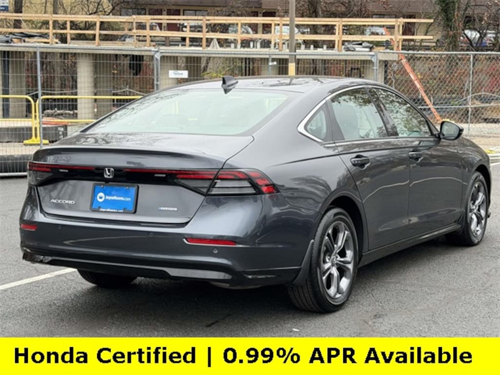 CARFAX One-Owner. Clean CARFAX. Certified. Meteorite Gray Metallic 2025 Honda Accord Hybrid EX-L ***ONE OWNER***, ***LOW MILES***, ***DEALER MAINTAINED***, ***EXCELLENT CONDITION***, ***HONDA CERTIFIED***, ***ADAPTIVE CRUISE CONTROL***, ***ALLOY WHEELS***, ***BACK UP CAMERA***, ***BLIND SIDE MONITORING***, ***FORWARD COLLISION ALERT***, ***LANE DEPARTURE WARNING***, ***HEATED SEATS***, ***LEATHER***, ***POWER MOONROOF***, ***POWER SEATS***, ***REMOTE START***, HondaTrue Certified Certified, 2.0L I4 DOHC 16V, 4-Wheel Disc Brakes, 8 Speakers, ABS brakes, Adaptive Cruise Control: Adaptive Cruise Control (ACC) with Low-Speed Follow, Air Conditioning, Alloy wheels, AM/FM radio, Apple CarPlay/Android Auto, Auto High-beam Headlights, Auto-dimming Rear-View mirror, Automatic temperature control, Blind Spot Information (BSI) System warning, Brake assist, Bumpers: body-color, Compass, Delay-off headlights, Driver door bin, Driver vanity mirror, Dual front impact airbags, Dual front side impact airbags, Electronic Stability Control, Emergency communication system: HondaLink, Exterior Parking Camera Rear, Four wheel independent suspension, Front anti-roll bar, Front Bucket Seats, Front Center Armrest, Front dual zone A/C, Front reading lights, Fully automatic headlights, Heated door mirrors, Heated Front Bucket Seats, Heated front seats, Illuminated entry, Knee airbag, Lane departure: Lane Keeping Assist System (LKAS) active, Leather Shift Knob, Leather steering wheel, Leather-Trimmed Seat Trim, Low tire pressure warning, Memory seat, Occupant sensing airbag, Outside temperature display, Overhead airbag, Overhead console, Panic alarm, Passenger door bin, Passenger vanity mirror, Power door mirrors, Power driver seat, Power moonroof, Power passenger seat, Power steering, Power windows, Radio data system, Radio: 180-Watt Audio System, Rear anti-roll bar, Rear reading lights, Rear seat center armrest, Rear side impact airbag, Rear window defroster, Remote keyless entry, Security system, Speed control, Speed-sensing steering, Speed-Sensitive Wipers, Split folding rear seat, Steering wheel mounted audio controls, Telescoping steering wheel, Tilt steering wheel, Traction control, Trip computer, Turn signal indicator mirrors, Variably intermittent wipers, Wheels: 17" x 7.5J Pewter Gray, 2.0L I4 DOHC 16V.