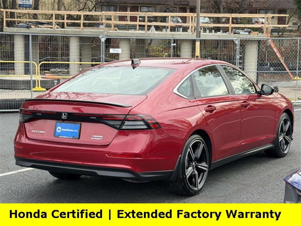 CARFAX One-Owner. Certified. Radiant Red Metallic 2025 Honda Accord Hybrid Sport ***ONE OWNER***, ***LOW MILES***, ***DEALER MAINTAINED***, ***EXCELLENT CONDITION***, ***HONDA CERTIFIED***, ***ADAPTIVE CRUISE CONTROL***, ***ALLOY WHEELS***, ***BACK UP CAMERA***, ***BLIND SIDE MONITORING***, ***FORWARD COLLISION ALERT***, ***LANE DEPARTURE WARNING***, ***POWER MOONROOF***, ***POWER SEAT***, ***REMOTE START***, HondaTrue Certified Certified, 2.0L I4 DOHC 16V, 4-Wheel Disc Brakes, 8 Speakers, ABS brakes, Adaptive Cruise Control: Adaptive Cruise Control (ACC) with Low-Speed Follow, Air Conditioning, Alloy wheels, AM/FM radio, Apple CarPlay/Android Auto, Auto High-beam Headlights, Automatic temperature control, Blind Spot Information (BSI) System warning, Brake assist, Bumpers: body-color, Compass, Delay-off headlights, Driver door bin, Driver vanity mirror, Dual front impact airbags, Dual front side impact airbags, Electronic Stability Control, Emergency communication system: HondaLink, Exterior Parking Camera Rear, Fabric Seat Trim, Four wheel independent suspension, Front anti-roll bar, Front Bucket Seats, Front Center Armrest, Front dual zone A/C, Front reading lights, Fully automatic headlights, Heated Front Bucket Seats, Heated front seats, Illuminated entry, Knee airbag, Lane departure: Lane Keeping Assist System (LKAS) active, Leather Shift Knob, Leather steering wheel, Low tire pressure warning, Occupant sensing airbag, Outside temperature display, Overhead airbag, Overhead console, Panic alarm, Passenger door bin, Passenger vanity mirror, Power door mirrors, Power driver seat, Power moonroof, Power steering, Power windows, Radio data system, Radio: 180-Watt Audio System, Rear anti-roll bar, Rear reading lights, Rear seat center armrest, Rear side impact airbag, Rear window defroster, Remote keyless entry, Security system, Speed control, Speed-sensing steering, Speed-Sensitive Wipers, Split folding rear seat, Spoiler, Steering wheel mounted audio controls, Telescoping steering wheel, Tilt steering wheel, Traction control, Trip computer, Variably intermittent wipers, Wheels: 19" x 8.5J Berlina Black, 2.0L I4 DOHC 16V.