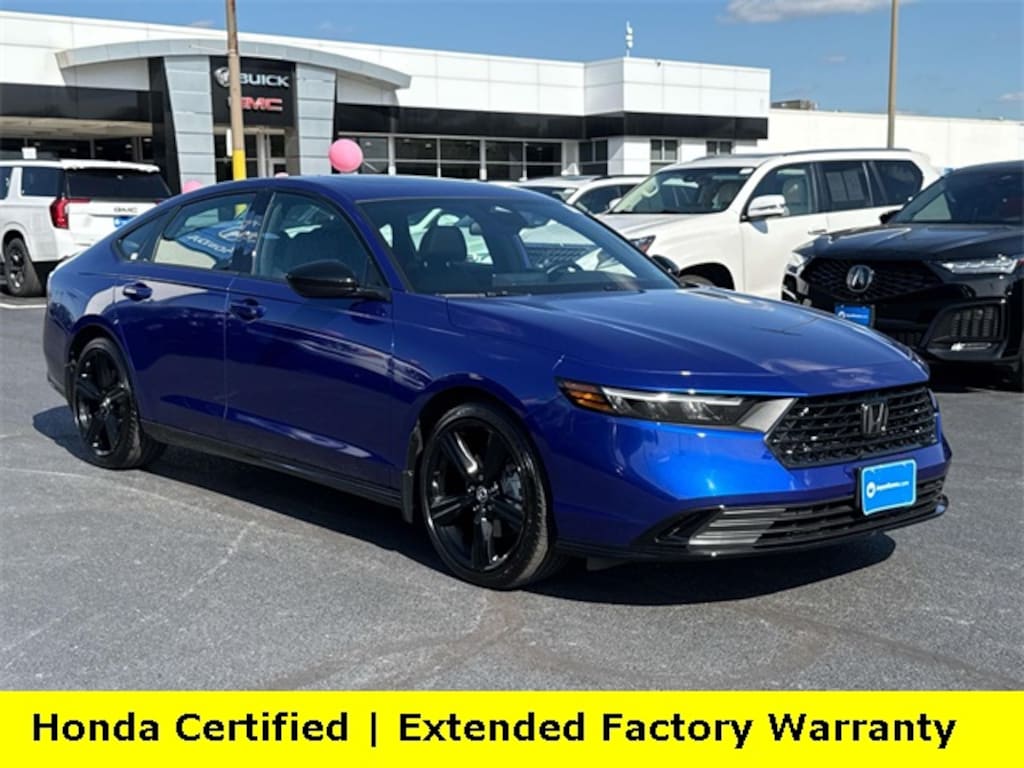 Clean CARFAX. Certified. Still Night Pearl 2025 Honda Accord Hybrid Sport-L ***ONE OWNER***, ***LOW MILES***, ***DEALER MAINTAINED***, ***EXCELLENT CONDITION***, ***HONDA CERTIFIED***, ***ADAPTIVE CRUISE CONTROL***, ***ALLOY WHEELS***, ***BACK UP CAMERA***, ***BLIND SIDE MONITORING***, ***FORWARD COLLISION ALERT***, ***LANE DEPARTURE WARNING***, ***HEATED SEATS***, ***LEATHER***, ***POWER MOONROOF***, ***POWER SEATS***, ***REMOTE START***, HondaTrue Certified Certified, 2.0L I4 DOHC 16V, 4-Wheel Disc Brakes, 8 Speakers, ABS brakes, Adaptive Cruise Control: Adaptive Cruise Control (ACC) with Low-Speed Follow, Air Conditioning, Alloy wheels, AM/FM radio, Apple CarPlay/Android Auto, Auto High-beam Headlights, Automatic temperature control, Blind Spot Information (BSI) System warning, Brake assist, Bumpers: body-color, Compass, Delay-off headlights, Driver door bin, Driver vanity mirror, Dual front impact airbags, Dual front side impact airbags, Electronic Stability Control, Emergency communication system: HondaLink, Exterior Parking Camera Rear, Four wheel independent suspension, Front anti-roll bar, Front Bucket Seats, Front Center Armrest, Front dual zone A/C, Front reading lights, Fully automatic headlights, Heated Front Bucket Seats, Heated front seats, Illuminated entry, Knee airbag, Lane departure: Lane Keeping Assist System (LKAS) active, Leather Shift Knob, Leather steering wheel, Leather-Trimmed Seat Trim, Low tire pressure warning, Memory seat, Occupant sensing airbag, Outside temperature display, Overhead airbag, Overhead console, Panic alarm, Passenger door bin, Passenger vanity mirror, Power door mirrors, Power driver seat, Power moonroof, Power passenger seat, Power steering, Power windows, Radio data system, Radio: 180-Watt Audio System, Rear anti-roll bar, Rear reading lights, Rear seat center armrest, Rear side impact airbag, Rear window defroster, Remote keyless entry, Security system, Speed control, Speed-sensing steering, Speed-Sensitive Wipers, Split folding rear seat, Spoiler, Steering wheel mounted audio controls, Telescoping steering wheel, Tilt steering wheel, Traction control, Trip computer, Variably intermittent wipers, Wheels: 19" x 8.5J Matte Berlina Black, 2.0L I4 DOHC 16V.