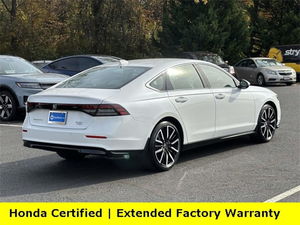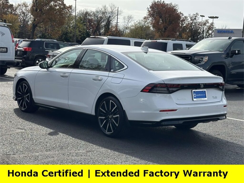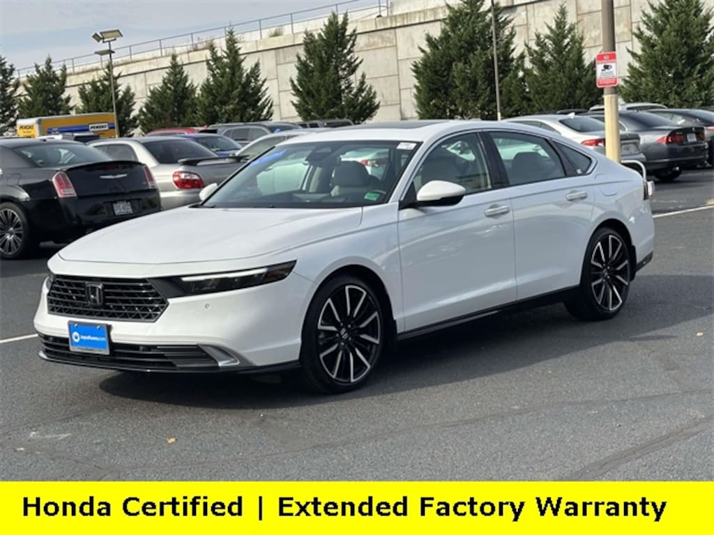 CARFAX One-Owner. Clean CARFAX. Certified. Platinum White Pearl 2025 Honda Accord Hybrid Touring ***ONE OWNER***, ***LOW MILES***, ***DEALER MAINTAINED***, ***EXCELLENT CONDITION***, ***LOADED***, ***HONDA CERTIFIED***, ***ADAPTIVE CRUISE CONTROL***, ***ALLOY WHEELS***, ***BACK UP CAMERA***, ***HEADS UP DISPLAY***, ***COOLED SEATS***, ***BLIND SIDE MONITORING***, ***FORWARD COLLISION ALERT***, ***LANE DEPARTURE WARNING***, ***HEATED SEATS***, ***HEATED STEERING WHEEL***, ***LEATHER***, ***BOSE SOUND***, ***POWER MOONROOF***, ***POWER SEATS***, ***REMOTE START***, HondaTrue Certified Certified, 2.0L I4 DOHC 16V, 12 Speakers, 4-Wheel Disc Brakes, ABS brakes, Adaptive Cruise Control: Adaptive Cruise Control (ACC) with Low-Speed Follow, Air Conditioning, Alloy wheels, AM/FM radio, Apple CarPlay/Android Auto, Auto High-beam Headlights, Auto-dimming Rear-View mirror, Automatic temperature control, Blind Spot Information (BSI) System warning, Bose Premium Sound System, Brake assist, Bumpers: body-color, Compass, Delay-off headlights, Driver door bin, Driver vanity mirror, Dual front impact airbags, Dual front side impact airbags, Electronic Stability Control, Emergency communication system: HondaLink, Exterior Parking Camera Rear, Four wheel independent suspension, Front anti-roll bar, Front Bucket Seats, Front Center Armrest, Front dual zone A/C, Front reading lights, Fully automatic headlights, Heads-Up Display, Heated & Ventilated Front Bucket Seats, Heated door mirrors, Heated front seats, Heated rear seats, Heated steering wheel, Illuminated entry, Knee airbag, Lane departure: Lane Keeping Assist System (LKAS) active, Leather Shift Knob, Leather steering wheel, Leather-Trimmed Seat Trim, Low tire pressure warning, Memory seat, Navigation System, Occupant sensing airbag, Outside temperature display, Overhead airbag, Overhead console, Panic alarm, Passenger door bin, Passenger vanity mirror, Power door mirrors, Power driver seat, Power moonroof, Power passenger seat, Power steering, Power windows, Radio data system, Rain sensing wipers, Rear anti-roll bar, Rear reading lights, Rear seat center armrest, Rear side impact airbag, Rear window defroster, Remote keyless entry, Security system, Speed control, Speed-sensing steering, Speed-Sensitive Wipers, Split folding rear seat, Steering wheel mounted audio controls, Telescoping steering wheel, Tilt steering wheel, Traction control, Trip computer, Turn signal indicator mirrors, Variably intermittent wipers, Ventilated front seats, Wheels: 19" x 8.5J Berlina Black, 2.0L I4 DOHC 16V.