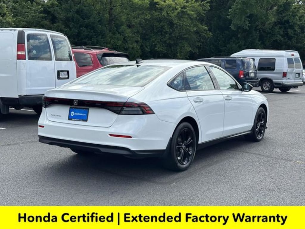 CARFAX One-Owner. Clean CARFAX. Certified. Platinum White Pearl 2025 Honda Accord SE ***ONE OWNER***, ***LOW MILES***, ***DEALER MAINTAINED***, ***EXCELLENT CONDITION***, ***HONDA CERTIFIED***, ***ADAPTIVE CRUISE CONTROL***, ***ALLOY WHEELS***, ***BACK UP CAMERA***, ***BLIND SIDE MONITORING***, ***FORWARD COLLISION ALERT***, ***LANE DEPARTURE WARNING***, ***HEATED SEATS***, ***POWER MOONROOF***, ***POWER SEAT***, ***REMOTE START***, HondaTrue Certified Certified, Black Cloth, 4-Wheel Disc Brakes, 8 Speakers, ABS brakes, Adaptive Cruise Control: Adaptive Cruise Control (ACC) with Low-Speed Follow, Air Conditioning, Alloy wheels, AM/FM radio, Apple CarPlay/Android Auto, Auto High-beam Headlights, Automatic temperature control, Blind Spot Information (BSI) System warning, Brake assist, Bumpers: body-color, Compass, Delay-off headlights, Driver door bin, Driver vanity mirror, Dual front impact airbags, Dual front side impact airbags, Electronic Stability Control, Emergency communication system: HondaLink Assist, Exterior Parking Camera Rear, Fabric Seat Trim, Four wheel independent suspension, Front anti-roll bar, Front Bucket Seats, Front Center Armrest, Front dual zone A/C, Front reading lights, Fully automatic headlights, Heated door mirrors, Heated Front Bucket Seats, Heated front seats, Illuminated entry, Knee airbag, Lane departure: Lane Keeping Assist System (LKAS) active, Low tire pressure warning, Occupant sensing airbag, Outside temperature display, Overhead airbag, Overhead console, Panic alarm, Passenger door bin, Passenger vanity mirror, Power door mirrors, Power driver seat, Power moonroof, Power steering, Power windows, Radio data system, Radio: 180-Watt Audio System, Rear anti-roll bar, Rear reading lights, Rear seat center armrest, Rear side impact airbag, Rear window defroster, Remote keyless entry, Security system, Speed control, Speed-sensing steering, Speed-Sensitive Wipers, Split folding rear seat, Steering wheel mounted audio controls, Tachometer, Telescoping steering wheel, Tilt steering wheel, Traction control, Trip computer, Variably intermittent wipers, Wheels: 17" x 7.5J Berlina Black, Black Cloth.
