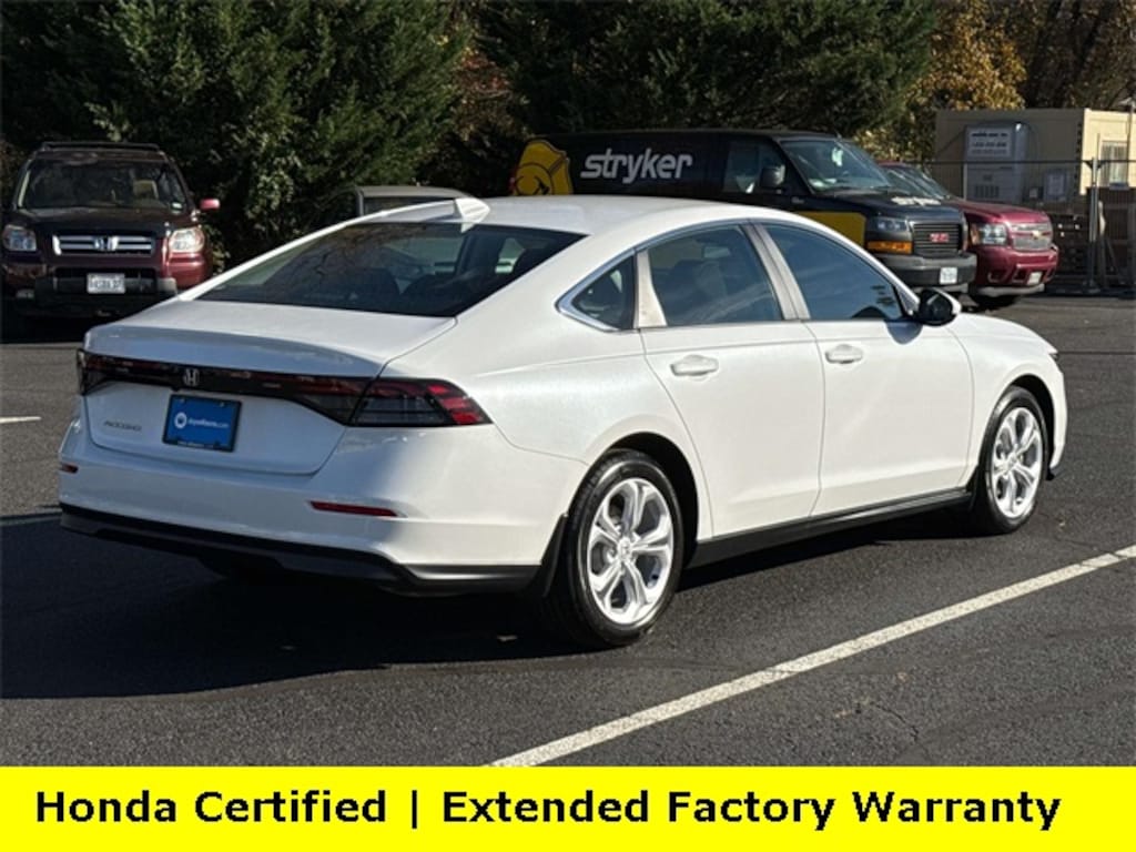 Clean CARFAX. Certified. Platinum White Pearl 2025 Honda Accord LX ***ONE OWNER***, ***LOW MILES***, ***DEALER MAINTAINED***, ***EXCELLENT CONDITION***, ***HONDA CERTIFIED***, ***ADAPTIVE CRUISE CONTROL***, ***ALLOY WHEELS***, ***BACK UP CAMERA***, ***FORWARD COLLISION ALERT***, ***LANE DEPARTURE WARNING***, HondaTrue Certified Certified, Black Cloth, 4 Speakers, 4-Wheel Disc Brakes, ABS brakes, Adaptive Cruise Control: Adaptive Cruise Control (ACC) with Low-Speed Follow, Air Conditioning, Alloy wheels, AM/FM radio, Apple CarPlay/Android Auto, Auto High-beam Headlights, Automatic temperature control, Brake assist, Bumpers: body-color, Compass, Delay-off headlights, Driver door bin, Driver vanity mirror, Dual front impact airbags, Dual front side impact airbags, Electronic Stability Control, Emergency communication system: HondaLink Assist, Exterior Parking Camera Rear, Fabric Seat Trim, Four wheel independent suspension, Front anti-roll bar, Front Bucket Seats, Front Center Armrest, Front reading lights, Fully automatic headlights, Illuminated entry, Knee airbag, Lane departure: Lane Keeping Assist System (LKAS) active, Low tire pressure warning, Occupant sensing airbag, Outside temperature display, Overhead airbag, Overhead console, Panic alarm, Passenger door bin, Passenger vanity mirror, Power door mirrors, Power steering, Power windows, Radio data system, Radio: 160-Watt Audio System, Rear anti-roll bar, Rear reading lights, Rear seat center armrest, Rear side impact airbag, Rear window defroster, Remote keyless entry, Security system, Speed control, Speed-sensing steering, Speed-Sensitive Wipers, Steering wheel mounted audio controls, Tachometer, Telescoping steering wheel, Tilt steering wheel, Traction control, Trip computer, Variably intermittent wipers, Wheels: 17" x 7.5J Blade Silver, Black Cloth.