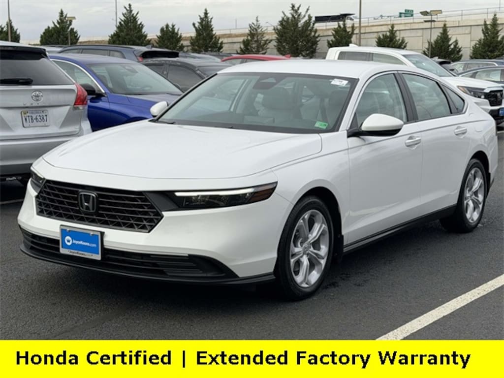 CARFAX One-Owner. Clean CARFAX. Certified. Platinum White 2025 Honda Accord LX ***ONE OWNER***, ***LOW MILES***, ***DEALER MAINTAINED***, ***EXCELLENT CONDITION***, ***HONDA CERTIFIED***, ***ADAPTIVE CRUISE CONTROL***, ***ALLOY WHEELS***, ***BACK UP CAMERA***, ***FORWARD COLLISION ALERT***, ***LANE DEPARTURE WARNING***, HondaTrue Certified Certified, Gray Cloth, 4 Speakers, 4-Wheel Disc Brakes, ABS brakes, Adaptive Cruise Control: Adaptive Cruise Control (ACC) with Low-Speed Follow, Air Conditioning, Alloy wheels, AM/FM radio, Apple CarPlay/Android Auto, Auto High-beam Headlights, Automatic temperature control, Brake assist, Bumpers: body-color, Compass, Delay-off headlights, Driver door bin, Driver vanity mirror, Dual front impact airbags, Dual front side impact airbags, Electronic Stability Control, Emergency communication system: HondaLink Assist, Exterior Parking Camera Rear, Fabric Seat Trim, Four wheel independent suspension, Front anti-roll bar, Front Bucket Seats, Front Center Armrest, Front reading lights, Fully automatic headlights, Illuminated entry, Knee airbag, Lane departure: Lane Keeping Assist System (LKAS) active, Low tire pressure warning, Occupant sensing airbag, Outside temperature display, Overhead airbag, Overhead console, Panic alarm, Passenger door bin, Passenger vanity mirror, Power door mirrors, Power steering, Power windows, Radio data system, Radio: 160-Watt Audio System, Rear anti-roll bar, Rear reading lights, Rear seat center armrest, Rear side impact airbag, Rear window defroster, Remote keyless entry, Security system, Speed control, Speed-sensing steering, Speed-Sensitive Wipers, Steering wheel mounted audio controls, Tachometer, Telescoping steering wheel, Tilt steering wheel, Traction control, Trip computer, Variably intermittent wipers, Wheels: 17" x 7.5J Blade Silver, Gray Cloth.