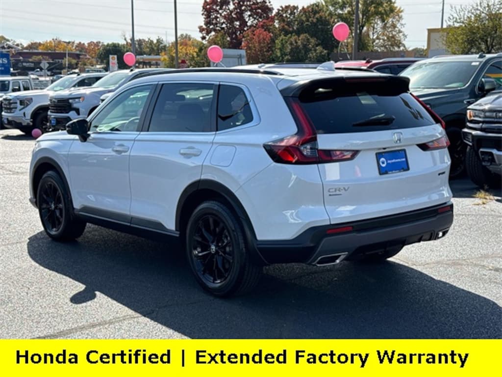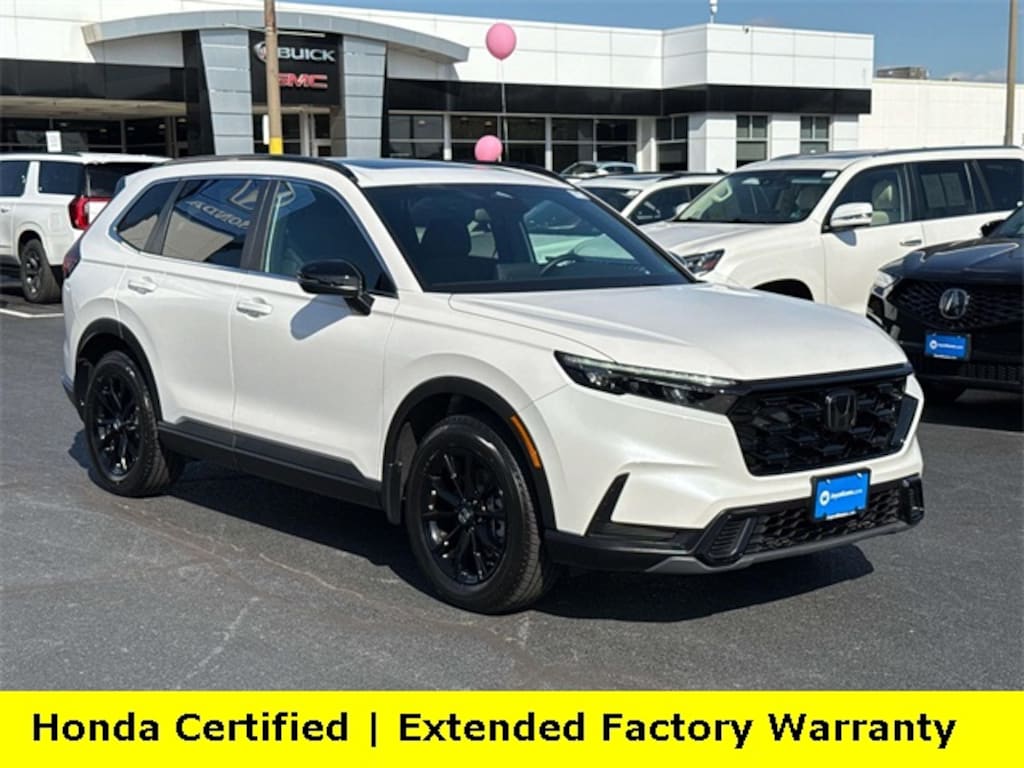 Clean CARFAX. Certified. Platinum White Pearl 2025 Honda CR-V Hybrid Sport ***ONE OWNER***, ***LOW MILES***, ***DEALER MAINTAINED***, ***EXCELLENT CONDITION***, ***HONDA CERTIFIED***, ***ALL WHEEL DRIVE***, ***ADAPTIVE CRUISE CONTROL***, ***ALLOY WHEELS***, ***BACK UP CAMERA***, ***BLIND SIDE MONITORING***, ***FORWARD COLLISION ALERT***, ***LANE DEPARTURE WARNING***, ***HEATED SEATS***, ***POWER MOONROOF***, ***POWER SEAT***, ***REMOTE START***, HondaTrue Certified Certified, 2.0L I4 DOHC 16V, 4-Wheel Disc Brakes, 6 Speakers, ABS brakes, Adaptive Cruise Control: Adaptive Cruise Control (ACC) with Low-Speed Follow, Air Conditioning, Alloy wheels, Apple CarPlay/Android Auto, Auto High-beam Headlights, Automatic temperature control, Blind Spot Information (BSI) System warning, Brake assist, Bumpers: body-color, Cloth Seat Trim, Compass, Delay-off headlights, Driver door bin, Driver vanity mirror, Dual front impact airbags, Dual front side impact airbags, Electronic Stability Control, Exterior Parking Camera Rear, Four wheel independent suspension, Front anti-roll bar, Front Bucket Seats, Front Center Armrest, Front dual zone A/C, Front reading lights, Fully automatic headlights, Heated door mirrors, Heated Front Bucket Seats, Heated front seats, Illuminated entry, Knee airbag, Leather Shift Knob, Leather steering wheel, Low tire pressure warning, Occupant sensing airbag, Outside temperature display, Overhead airbag, Overhead console, Panic alarm, Passenger door bin, Passenger vanity mirror, Power door mirrors, Power driver seat, Power moonroof, Power steering, Power windows, Radio data system, Radio: 240-Watt AM/FM Audio System, Rear anti-roll bar, Rear reading lights, Rear seat center armrest, Rear side impact airbag, Rear window defroster, Rear window wiper, Remote keyless entry, Security system, Speed control, Speed-sensing steering, Speed-Sensitive Wipers, Split folding rear seat, Spoiler, Steering wheel mounted audio controls, Telescoping steering wheel, Tilt steering wheel, Traction control, Trip computer, Turn signal indicator mirrors, Variably intermittent wipers, Wheels: 18" Berlina Black Alloy, 2.0L I4 DOHC 16V.