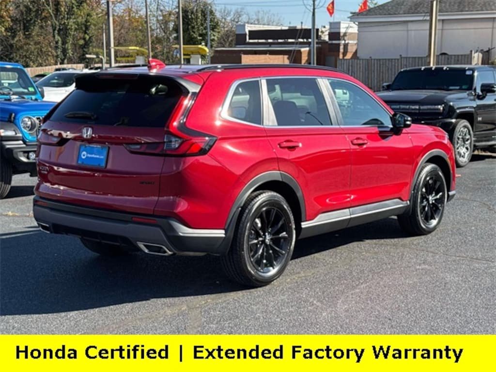Clean CARFAX. Certified. Radiant Red Metallic 2025 Honda CR-V Hybrid Sport ***ONE OWNER***, ***LOW MILES***, ***DEALER MAINTAINED***, ***EXCELLENT CONDITION***, ***HONDA CERTIFIED***, ***ALL WHEEL DRIVE***, ***ADAPTIVE CRUISE CONTROL***, ***ALLOY WHEELS***, ***BACK UP CAMERA***, ***BLIND SIDE MONITORING***, ***FORWARD COLLISION ALERT***, ***LANE DEPARTURE WARNING***, ***HEATED SEATS***, ***POWER MOONROOF***, ***POWER SEAT***, ***REMOTE START***, HondaTrue Certified Certified, 2.0L I4 DOHC 16V, 4-Wheel Disc Brakes, 6 Speakers, ABS brakes, Adaptive Cruise Control: Adaptive Cruise Control (ACC) with Low-Speed Follow, Air Conditioning, Alloy wheels, Apple CarPlay/Android Auto, Auto High-beam Headlights, Automatic temperature control, Blind Spot Information (BSI) System warning, Brake assist, Bumpers: body-color, Cloth Seat Trim, Compass, Delay-off headlights, Driver door bin, Driver vanity mirror, Dual front impact airbags, Dual front side impact airbags, Electronic Stability Control, Exterior Parking Camera Rear, Four wheel independent suspension, Front anti-roll bar, Front Bucket Seats, Front Center Armrest, Front dual zone A/C, Front reading lights, Fully automatic headlights, Heated door mirrors, Heated Front Bucket Seats, Heated front seats, Illuminated entry, Knee airbag, Leather Shift Knob, Leather steering wheel, Low tire pressure warning, Occupant sensing airbag, Outside temperature display, Overhead airbag, Overhead console, Panic alarm, Passenger door bin, Passenger vanity mirror, Power door mirrors, Power driver seat, Power moonroof, Power steering, Power windows, Radio data system, Radio: 240-Watt AM/FM Audio System, Rear anti-roll bar, Rear reading lights, Rear seat center armrest, Rear side impact airbag, Rear window defroster, Rear window wiper, Remote keyless entry, Security system, Speed control, Speed-sensing steering, Speed-Sensitive Wipers, Split folding rear seat, Spoiler, Steering wheel mounted audio controls, Telescoping steering wheel, Tilt steering wheel, Traction control, Trip computer, Turn signal indicator mirrors, Variably intermittent wipers, Wheels: 18" Berlina Black Alloy, 2.0L I4 DOHC 16V.