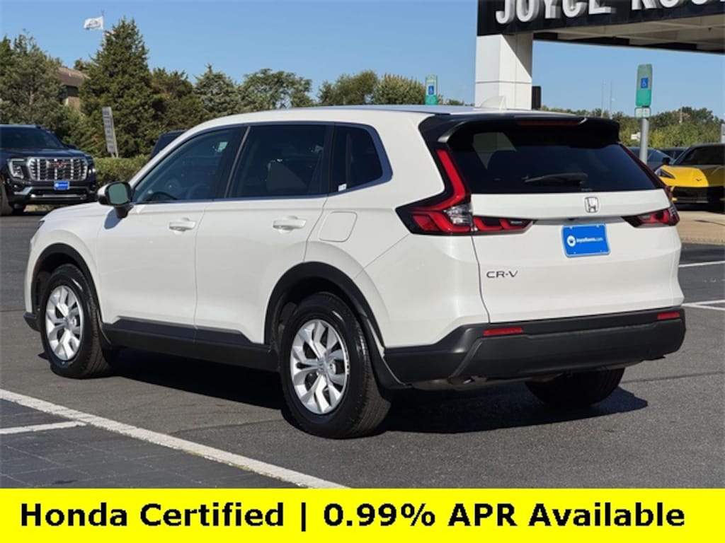 CARFAX One-Owner. Clean CARFAX. Certified. Platinum White Pearl 2025 Honda CR-V LX ***ONE OWNER***, ***LOW MILES***, ***DEALER MAINTAINED***, ***EXCELLENT CONDITION***, ***HONDA CERTIFIED***, ***ALL WHEEL DRIVE***, ***ADAPTIVE CRUISE CONTROL***, ***ALLOY WHEELS***, ***BACK UP CAMERA***, ***FORWARD COLLISION ALERT***, ***LANE DEPARTURE WARNING***, HondaTrue Certified Certified, AWD, 4 Speakers, 4-Wheel Disc Brakes, ABS brakes, Adaptive Cruise Control: Adaptive Cruise Control (ACC) with Low-Speed Follow, Air Conditioning, Apple CarPlay/Android Auto, Auto High-beam Headlights, Automatic temperature control, Brake assist, Bumpers: body-color, Cloth Seat Trim, Compass, Delay-off headlights, Driver door bin, Driver vanity mirror, Dual front impact airbags, Dual front side impact airbags, Electronic Stability Control, Exterior Parking Camera Rear, Four wheel independent suspension, Front anti-roll bar, Front Bucket Seats, Front Center Armrest, Front reading lights, Fully automatic headlights, Illuminated entry, Knee airbag, Low tire pressure warning, Occupant sensing airbag, Outside temperature display, Overhead airbag, Overhead console, Panic alarm, Passenger door bin, Passenger vanity mirror, Power door mirrors, Power steering, Power windows, Radio data system, Radio: 160-Watt AM/FM Audio System, Rear anti-roll bar, Rear reading lights, Rear seat center armrest, Rear side impact airbag, Rear window defroster, Rear window wiper, Remote keyless entry, Security system, Speed control, Speed-sensing steering, Speed-Sensitive Wipers, Split folding rear seat, Spoiler, Steering wheel mounted audio controls, Tachometer, Telescoping steering wheel, Tilt steering wheel, Traction control, Trip computer, Turn signal indicator mirrors, Variably intermittent wipers, AWD.