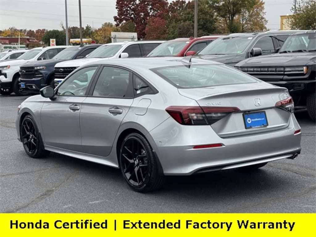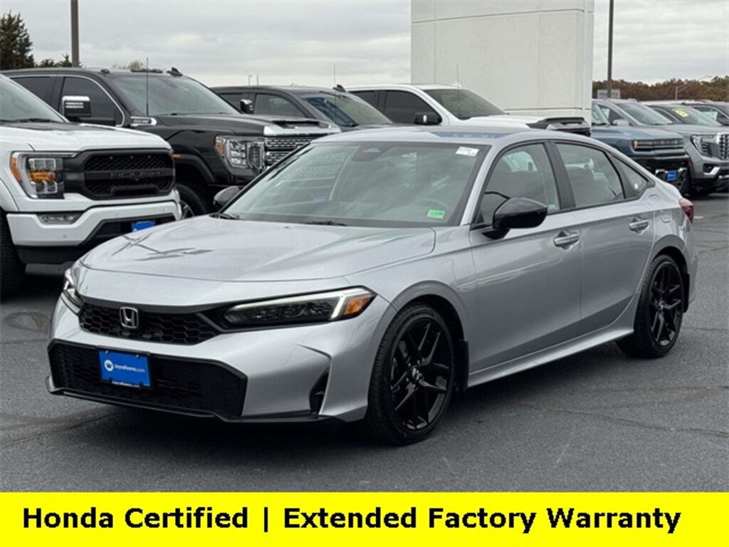 Clean CARFAX. Certified. Solar Silver Metallic 2025 Honda Civic Sport ***ONE OWNER***, ***LOW MILES***, ***DEALER MAINTAINED***, ***EXCELLENT CONDITION***, ***HONDA CERTIFIED***, ***ADAPTIVE CRUISE CONTROL***, ***ALLOY WHEELS***, ***BACK UP CAMERA***, ***BLIND SIDE MONITORING***, ***FORWARD COLLISION ALERT***, ***LANE DEPARTURE WARNING***, ***REMOTE START***, HondaTrue Certified Certified, Black w/Cloth Seating Surfaces, 4-Wheel Disc Brakes, 8 Speakers, ABS brakes, Adaptive Cruise Control: Adaptive Cruise Control (ACC) with Low-Speed Follow, Air Conditioning, Alloy wheels, AM/FM radio, Apple CarPlay/Android Auto, Auto High-beam Headlights, Automatic temperature control, Blind Spot Information (BSI) System warning, Brake assist, Bumpers: body-color, Cloth/Leatherette Seating Surfaces, Delay-off headlights, Driver door bin, Driver vanity mirror, Dual front impact airbags, Dual front side impact airbags, Electronic Stability Control, Emergency communication system: HondaLink, Exterior Parking Camera Rear, Four wheel independent suspension, Front anti-roll bar, Front Bucket Seats, Front Center Armrest, Front reading lights, Fully automatic headlights, Heated door mirrors, Illuminated entry, Knee airbag, Leather Shift Knob, Leather steering wheel, Low tire pressure warning, Occupant sensing airbag, Outside temperature display, Overhead airbag, Panic alarm, Passenger door bin, Passenger vanity mirror, Power door mirrors, Power steering, Power windows, Radio data system, Radio: 180-Watt Audio System, Rear anti-roll bar, Rear seat center armrest, Rear side impact airbag, Rear window defroster, Remote keyless entry, Security system, Speed control, Speed-sensing steering, Split folding rear seat, Steering wheel mounted audio controls, Tachometer, Telescoping steering wheel, Tilt steering wheel, Traction control, Trip computer, Wheels: 18" Gloss Black Alloy, Black w/Cloth Seating Surfaces.