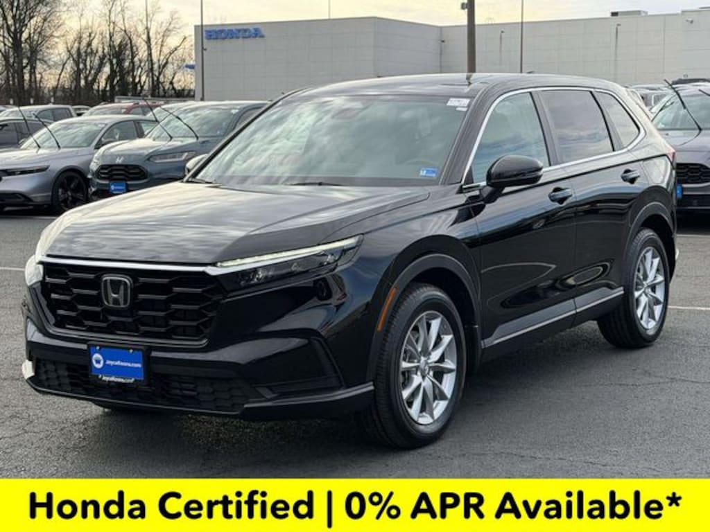 CARFAX One-Owner. Clean CARFAX. Certified. Crystal Black Pearl 2026 Honda CR-V EX ***ONE OWNER***, ***LOW MILES***, ***DEALER MAINTAINED***, ***EXCELLENT CONDITION***, ***HONDA CERTIFIED***, ***ALL WHEEL DRIVE***, ***ADAPTIVE CRUISE CONTROL***, ***ALLOY WHEELS***, ***BACK UP CAMERA***, ***BLIND SIDE MONITORING***, ***FORWARD COLLISION ALERT***, ***LANE DEPARTURE WARNING***, ***HEATED SEATS***, ***POWER MOONROOF***, ***POWER SEAT***, ***REMOTE START***, HondaTrue Certified Certified, AWD, 4-Wheel Disc Brakes, 6 Speakers, ABS brakes, Adaptive Cruise Control: Adaptive Cruise Control (ACC) with Low-Speed Follow, Air Conditioning, Alloy wheels, AM/FM radio, Apple CarPlay/Android Auto, Auto High-beam Headlights, Automatic temperature control, Blind Spot Information (BSI) System warning, Brake assist, Bumpers: body-color, Cloth Seat Trim, Compass, Delay-off headlights, Driver door bin, Driver vanity mirror, Dual front impact airbags, Dual front side impact airbags, Electronic Stability Control, Exterior Parking Camera Rear, Four wheel independent suspension, Front anti-roll bar, Front Bucket Seats, Front Center Armrest, Front dual zone A/C, Front reading lights, Fully automatic headlights, Heated door mirrors, Heated Front Bucket Seats, Heated front seats, Illuminated entry, Knee airbag, Low tire pressure warning, Occupant sensing airbag, Outside temperature display, Overhead airbag, Overhead console, Panic alarm, Passenger door bin, Passenger vanity mirror, Power door mirrors, Power driver seat, Power moonroof, Power steering, Power windows, Radio data system, Radio: 240-Watt AM/FM Audio System, Rear anti-roll bar, Rear reading lights, Rear seat center armrest, Rear side impact airbag, Rear window defroster, Rear window wiper, Remote keyless entry, Security system, Speed control, Speed-sensing steering, Speed-Sensitive Wipers, Split folding rear seat, Spoiler, Steering wheel mounted audio controls, Tachometer, Telescoping steering wheel, Tilt steering wheel, Traction control, Trip computer, Turn signal indicator mirrors, Variably intermittent wipers, Wheels: 18" Sparkle Silver, AWD.