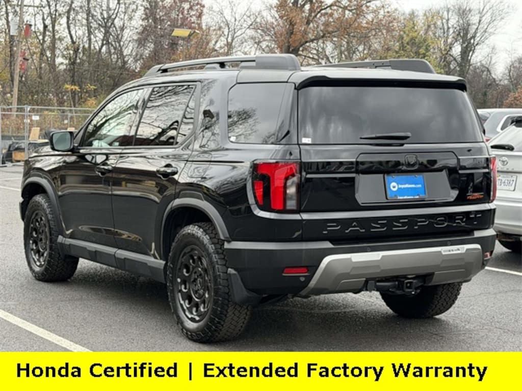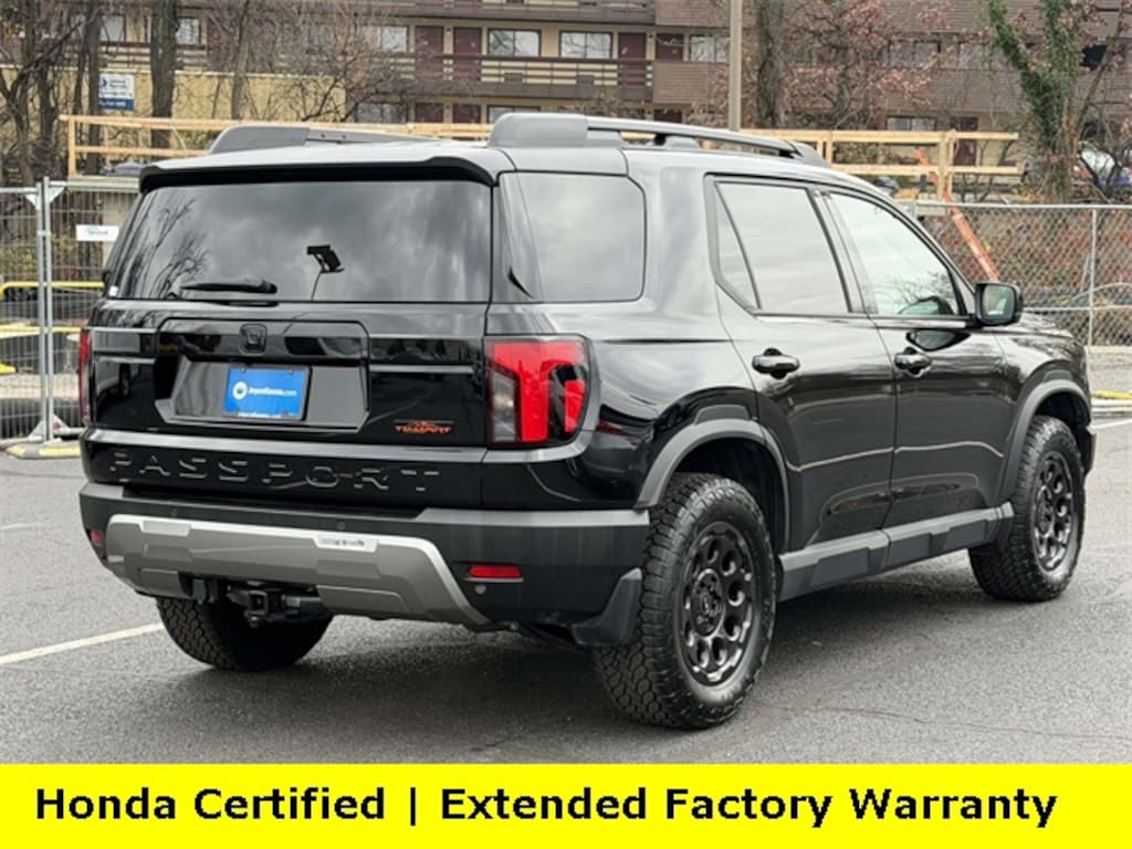 CARFAX One-Owner. Clean CARFAX. Certified. Crystal Black Pearl 2026 Honda Passport TrailSport Elite Blackout ***ONE OWNER***, ***LOW MILES***, ***DEALER MAINTAINED***, ***EXCELLENT CONDITION***, ***LOADED***, ***HONDA CERTIFIED***, ***ALL WHEEL DRIVE***, ***ADAPTIVE CRUISE CONTROL***, ***ALLOY WHEELS***, ***BACK UP CAMERA***, ***COOLED SEATS***, ***BLIND SIDE MONITORING***, ***FORWARD COLLISION ALERT***, ***LANE DEPARTURE WARNING***, ***HEATED SEATS***, ***HEATED STEERING WHEEL***, ***LEATHER***, ***BOSE SOUND***, ***NAVIGATION***, ***POWER LIFTGATE***, ***POWER MOONROOF***, ***POWER SEATS***, ***REMOTE START***, HondaTrue Certified Certified, 12 Speakers, 4-Wheel Disc Brakes, ABS brakes, Adaptive Cruise Control: Adaptive Cruise Control (ACC) with Low-Speed Follow, Air Conditioning, Alloy wheels, Apple CarPlay/Android Auto, Auto High-beam Headlights, Auto-dimming door mirrors, Auto-dimming Rear-View mirror, Automatic temperature control, Blind Spot Information (BSI) System warning, Brake assist, Compass, Delay-off headlights, Driver door bin, Driver vanity mirror, Driver's Seat Mounted Armrest, Dual front impact airbags, Dual front side impact airbags, Electronic Stability Control, Emergency communication system: HondaLink, Exterior Parking Camera Rear, Four wheel independent suspension, Front anti-roll bar, Front Bucket Seats, Front Center Armrest, Front dual zone A/C, Front fog lights, Front reading lights, Fully automatic headlights, Heated & Ventilated Front Bucket Seats, Heated door mirrors, Heated front seats, Heated rear seats, Heated steering wheel, HVAC memory, Illuminated entry, Knee airbag, Lane departure: Lane Keeping Assist System (LKAS) active, Leather steering wheel, Low tire pressure warning, Memory seat, Navigation system: Google Maps, Occupant sensing airbag, Outside temperature display, Overhead airbag, Overhead console, Panic alarm, Passenger door bin, Passenger seat mounted armrest, Passenger vanity mirror, Perforated Leather Seat Trim, Power door mirrors, Power driver seat, Power Liftgate, Power moonroof, Power passenger seat, Power steering, Power windows, Radio data system, Radio: Bose Premium Sound System w/12 Speakers, Rain sensing wipers, Rear air conditioning, Rear anti-roll bar, Rear reading lights, Rear seat center armrest, Rear window defroster, Rear window wiper, Remote keyless entry, Security system, Speed control, Speed-sensing steering, Split folding rear seat, Spoiler, Steering wheel mounted audio controls, Tachometer, Telescoping steering wheel, Tilt steering wheel, Traction control, Trip computer, Turn signal indicator mirrors, Variably intermittent wipers, Ventilated front seats, Wheels: 18" HPD Black Alloy.