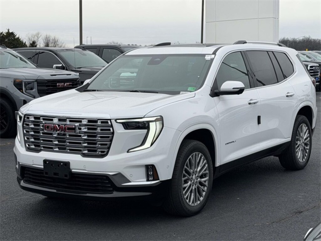Summit White 2026 GMC Acadia Denali AWD 8-Speed Automatic 2.5L DOHC AWD, After Dark Leather.
