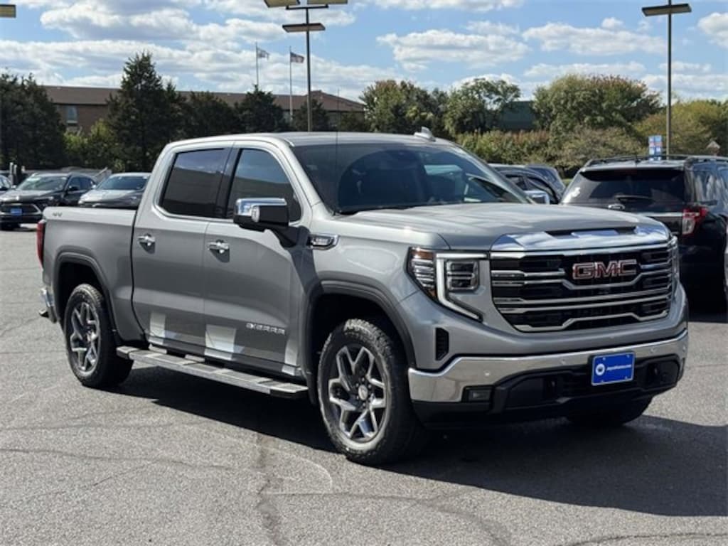 Sterling Metallic 2026 GMC Sierra 1500 SLT 4WD 10-Speed Automatic 3.0L I6 10-Speed Automatic, 4WD, Black Leather.