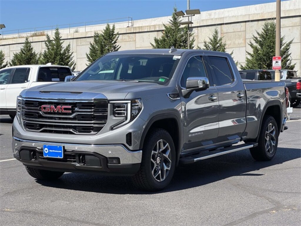 Sterling Metallic 2026 GMC Sierra 1500 SLT 4WD 10-Speed Automatic EcoTec3 5.3L V8 10-Speed Automatic, 4WD, Black Leather. Price includes the following incentives: $1500 - GM Bonus Cash $1750 - Buick & GMC Consumer Cash Program