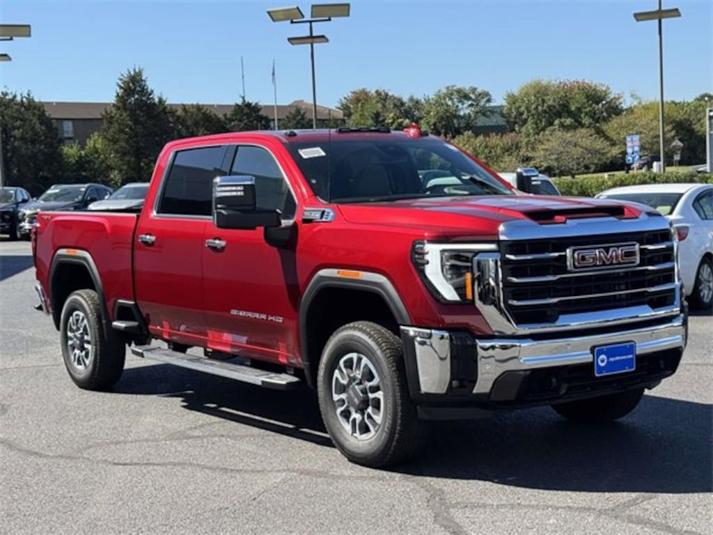 Volcanic Red Tintcoat 2026 GMC Sierra 2500HD SLT 4WD 10-Speed Automatic 6.6L V8 10-Speed Automatic, 4WD, Dark Walnut/Slate Leather. Price includes the following incentives: $500 - Buick & GMC Consumer Cash Program