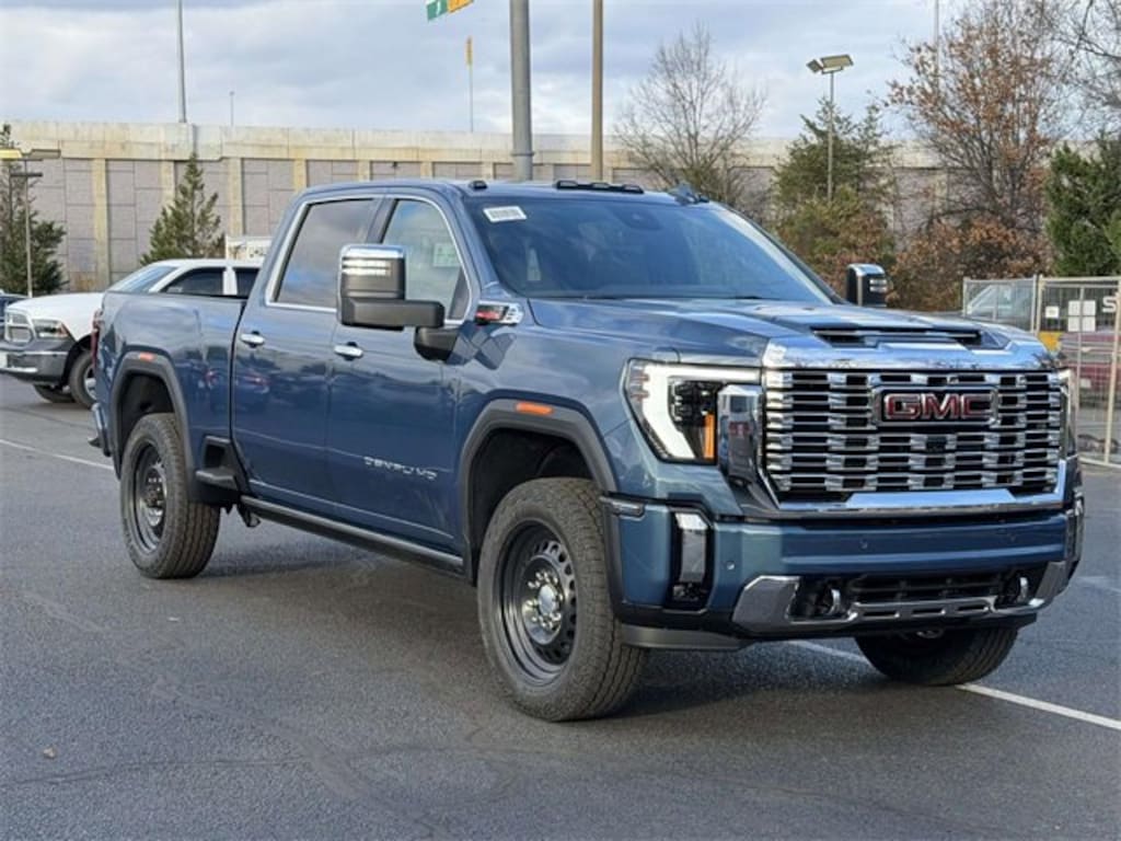 Downpour Metallic 2026 GMC Sierra 2500HD Denali 4WD 10-Speed Automatic Duramax 6.6L V8 Turbodiesel 10-Speed Automatic, 4WD, Atmosphere/Brownstone Leather. Price includes the following incentives: $500 - Buick & GMC Consumer Cash Program