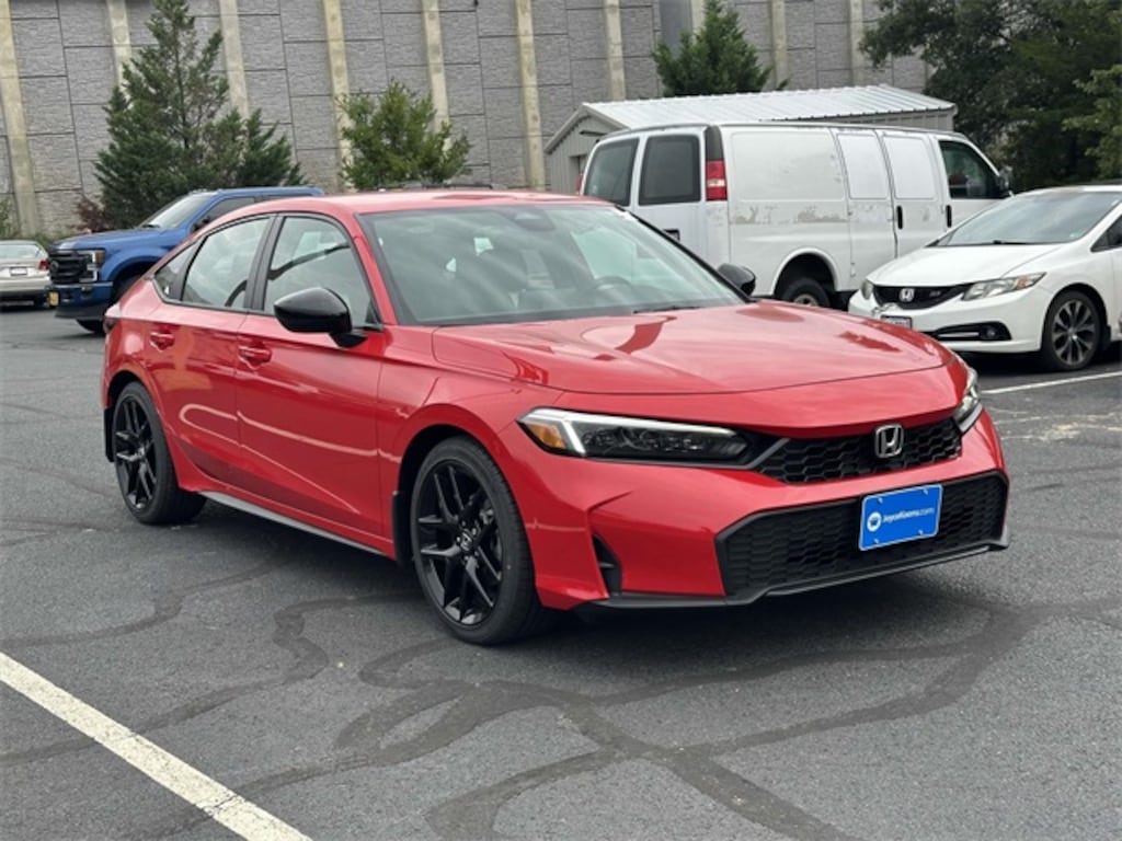 Rallye Red 2025 Honda Civic Sport FWD CVT 2.0L I4 DOHC 16V Black Artificial Leather.