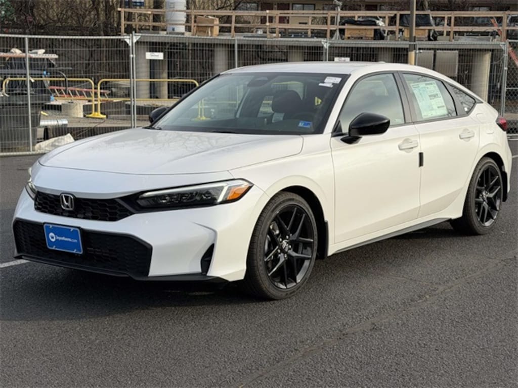 Platinum White Pearl 2026 Honda Civic Sport FWD CVT 2.0L I4 DOHC 16V Black Artificial Leather.