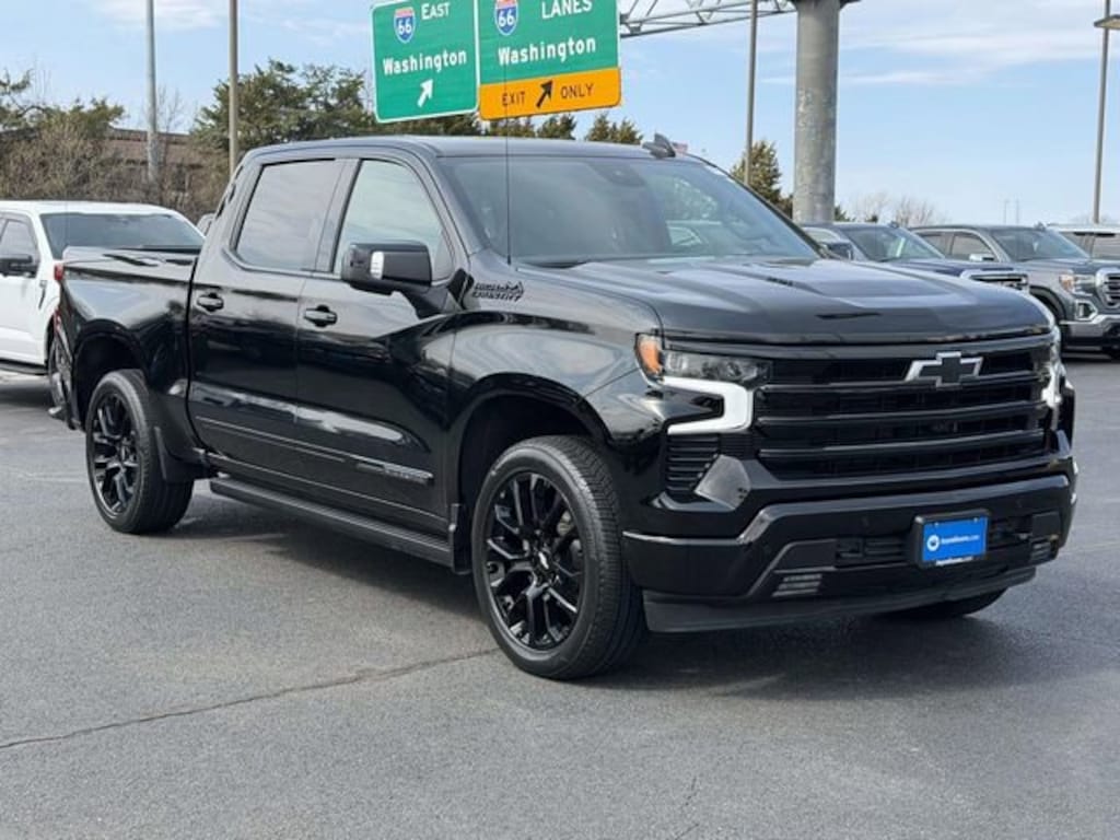 CARFAX One-Owner. Clean CARFAX. Black 2025 Chevrolet Silverado 1500 High Country ***ONE OWNER***, ***LOW MILES***, ***LOCAL TRADE***, ***EXCELLENT CONDITION***, ***LOADED***, ***4 WHEEL DRIVE***, ***ADAPTIVE CRUISE CONTROL***, ***ALLOY WHEELS***, ***BACK UP CAMERA***, ***BED LINER***, ***HEADS UP DISPLAY***, ***COOLED SEATS***, ***BLIND SIDE MONITORING***, ***FORWARD COLLISION ALERT***, ***LANE DEPARTURE WARNING***, ***HEATED SEATS***, ***HEATED STEERING WHEEL***, ***LEATHER***, ***SIRIUS XM RADIO***, ***BOSE SOUND***, ***NAVIGATION***, ***POWER MOONROOF***, ***POWER SEATS***, ***REMOTE START***, ***TOW PACKAGE***, 10-Speed Automatic, 4WD, Black Leather, 10-Way Power Driver Seat w/Lumbar, 10-Way Power Passenger Seat Adjuster w/Lumbar, 12.3 Multicolor Reconfigurable Digital Display, 120-Volt Bed Mounted Power Outlet, 120-Volt Interior Power Outlet, 15 Diagonal Multicolor Head-Up Display, 170 Amp Alternator, 2 USB Data Ports, 2nd Row Heated Outboard Seats, 3.23 Rear Axle Ratio, 4-Wheel Disc Brakes, 7 Speakers, ABS brakes, Adaptive Cruise Control, Adaptive Ride Control Suspension, Air Conditioning, All-Weather Floor Liner (LPO), Alloy wheels, AM/FM radio: SiriusXM with 360L, Apple CarPlay/Android Auto, Auto High-beam Headlights, Auto-dimming door mirrors, Auto-Dimming Inside Rear-View Mirror, Auto-dimming Rear-View mirror, Auto-Locking Rear Differential, Automatic temperature control, Bed View Camera, Black Body Side Moldings, Black Door Handles, Black Dual Exhaust Tips, Black Grille, Black Mirror Caps, Black Power-Retractable Assist Steps, Bluetooth® For Phone, Body-Color Painted Mirror Caps, Bodyside moldings, Brake assist, Bumpers: body-color, Chevytec Spray-On Black Bedliner, Chrome Assist Steps, Chrome Recovery Hooks, Color-Keyed Carpeting Floor Covering, Compass, Dark Headlamp Bezel, Deep-Tinted Glass, Delay-off headlights, Driver door bin, Driver Memory, Driver vanity mirror, Dual Active Exhaust, Dual Exhaust w/Polished Outlets, Dual front impact airbags, Dual front side impact airbags, Dual Rear USB Ports (Charge Only), Electric Rear-Window Defogger, Electronic Stability Control, Electronic Transmission Range Selector Shifter, Emergency communication system: OnStar, Enhanced Automatic Emergency Braking, Floor Mounted Center Console, Following Distance Indicator, Forward Collision Alert, Front anti-roll bar, Front Bucket Seats, Front Carpeted Floor Mats, Front Center Armrest, Front dual zone A/C, Front fog lights, Front Frame-Mounted Black Recovery Hooks, Front LED Fog Lamps, Front License Plate Kit, Front Pedestrian Braking, Front Rain-Sensing Wipers, Front reading lights, Front wheel independent suspension, Fully automatic headlights, Garage door transmitter, Genuine wood console insert, Genuine wood dashboard insert, Genuine wood door panel insert, HD Surround Vision, Heated door mirrors, Heated Driver & Front Outboard Passenger Seats, Heated front seats, Heated rear seats, Heated Steering Wheel, Heated steering wheel, High Capacity Suspension Package, High Country Premium Package, Hitch Guidance, Hitch Guidance w/Hitch View, Illuminated entry, In-Vehicle Trailering System App, Integrated Trailer Brake Controller, IntelliBeam Automatic High Beam On/Off, Keyless Open & Start, Lane Keep Assist w/Lane Departure Warning, LED Cargo Area Lighting, Low tire pressure warning, Memory seat, Midnight Edition, Occupant sensing airbag, OnStar Services Capable, Outside Heated Power-Adjustable Mirrors, Outside temperature display, Overhead airbag, Overhead console, Panic alarm, Passenger door bin, Passenger vanity mirror, Perforated Leather Seat Trim, Perimeter Lighting, Power door mirrors, Power driver seat, Power Front Passenger Windows w/Express Up/Down, Power Front Windows w/Driver Express Up/Down, Power passenger seat, Power Rear Windows w/Express Down, Power Sliding Rear Window w/Rear Defogger, Power steering, Power Sunroof, Power Tailgate, Power Tilt & Telescoping Steering Colum