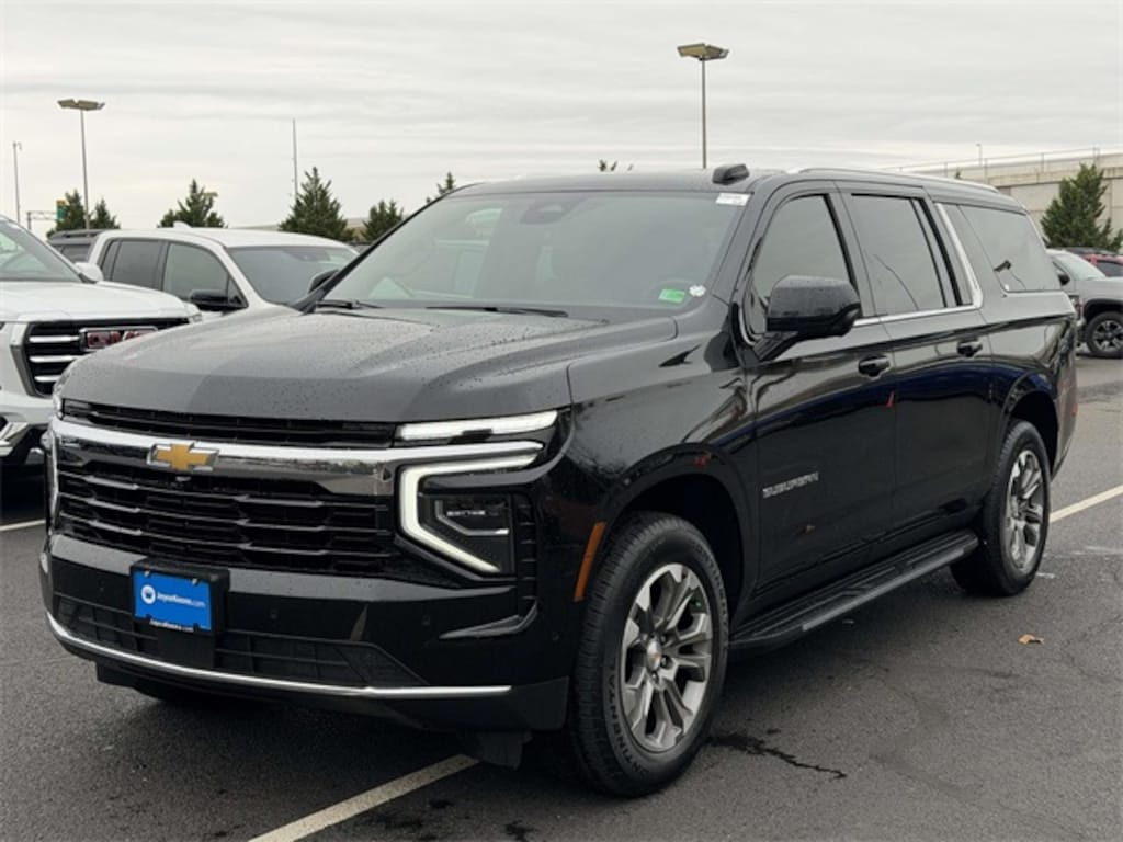 CARFAX One-Owner. Clean CARFAX. Black 2025 Chevrolet Suburban LS ***ONE OWNER***, ***LOCAL TRADE***, ***DEALER MAINTAINED***, ***EXCELLENT CONDITION***, ***3RD ROW SEATS***, ***4 WHEEL DRIVE***, ***ADAPTIVE CRUISE CONTROL***, ***ALLOY WHEELS***, ***BACK UP CAMERA***, ***BLIND SIDE MONITORING***, ***FORWARD COLLISION ALERT***, ***LEATHER***, ***REMOTE START***, 2-Way Driver Power Lumbar Seat Adjuster, 2-Way Front Passenger Power Lumbar Seat Adjuster, 3.23 Rear Axle Ratio, 3rd row seats: split-bench, 4-Wheel Disc Brakes, 6 Speakers, 6-Speaker Audio System, 6-Way Power Front Passenger Seat Adjuster, 8-Way Power Driver Seat Adjuster, ABS brakes, Air Conditioning, Alloy wheels, AM/FM radio: SiriusXM with 360L, Apple CarPlay/Android Auto, Auto High-beam Headlights, Automatic temperature control, Brake assist, Bumpers: body-color, Compass, Delay-off headlights, Driver door bin, Driver vanity mirror, Dual front impact airbags, Dual front side impact airbags, Electronic Stability Control, Emergency communication system: OnStar Services capable, Exterior Parking Camera Rear, Four wheel independent suspension, Front anti-roll bar, Front Bucket Seats, Front Center Armrest, Front dual zone A/C, Front reading lights, Fully automatic headlights, Heated door mirrors, Illuminated entry, License Plate Front Mounting Package, Low tire pressure warning, Navigation system: Google built-in compatibility (select service plan required, terms and limitations apply), Occupant sensing airbag, Outside temperature display, Overhead airbag, Overhead console, Panic alarm, Passenger door bin, Passenger vanity mirror, Power door mirrors, Power driver seat, Power passenger seat, Power steering, Power windows, Preferred Equipment Group 1LS, Premium Cloth Seat Trim, Premium Smooth Ride Suspension, Radio data system, Radio: 17.7" Diagonal Advanced Color LCD Display, Rain sensing wipers, Rear air conditioning, Rear anti-roll bar, Rear reading lights, Rear seat center armrest, Rear window defroster, Rear window wiper, Remote keyless entry, Security system, Speed control, Speed-sensing steering, Split folding rear seat, Spoiler, Steering wheel mounted audio controls, Tachometer, Telescoping steering wheel, Tilt steering wheel, Traction control, Trip computer, Variably intermittent wipers, Voltmeter, Wheels: 18" x 8.5" Bright Silver Painted Aluminum, Wheels: 20" x 9" Machined Aluminum, Wireless Apple CarPlay/Wireless Android Auto.