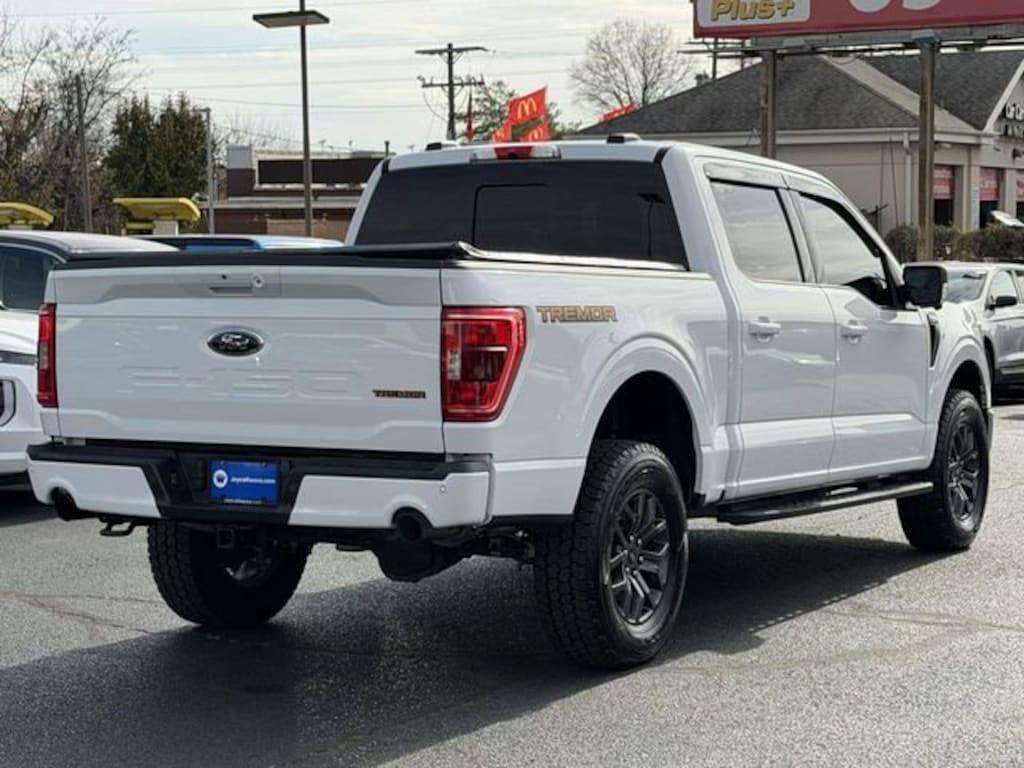 CARFAX One-Owner. Clean CARFAX. Oxford White 2022 Ford F-150 Tremor ***ONE OWNER***, ***LOW MILES***, ***LOCAL TRADE***, ***LOADED***, ***4 WHEEL DRIVE***, ***ALLOY WHEELS***, ***BACK UP CAMERA***, ***BED LINER***, ***BLIND SIDE MONITORING***, ***FORWARD COLLISION ALERT***, ***LANE DEPARTURE WARNING***, ***HEATED SEATS***, ***POWER MOONROOF***, ***POWER SEATS***, ***REMOTE START***, ***TOW PACKAGE***, 4WD, ABS brakes, Alloy wheels, Compass, Electronic Stability Control, Heated door mirrors, Illuminated entry, Low tire pressure warning, Remote keyless entry, Traction control, 4-Wheel Disc Brakes, 6 Speakers, 8 Productivity Screen in Instrument Cluster, Air Conditioning, AM/FM radio: SiriusXM with 360L, Auto High Beam, Auto High-beam Headlights, Auto-Dimming Rear-View Mirror, Bed Utility Package, BLIS w/Cross Traffic Alert, Body-Color Door Handles w/Body-Color Bezel, BoxLink, Brake assist, Bumpers: body-color, Carpeted Floor Mats w/Tremor Logo, Class IV Trailer Hitch Receiver, Delay-off headlights, Driver door bin, Dual front impact airbags, Dual front side impact airbags, Dual Zone Electronic Automatic Temperature Control, Electronic Locking w/3.73 Axle Ratio, Emergency communication system: SYNC 4 911 Assist, Equipment Group 401A Mid, Extended Range 36 Gallon Fuel Tank, Exterior Parking Camera Rear, Ford Co-Pilot360 2.0, Front anti-roll bar, Front Bucket Seats, Front Center Armrest, Front fog lights, Front reading lights, Front wheel independent suspension, Fully automatic headlights, GVWR: 7,050 lbs Payload Package, Heated Front Seats, Integrated Trailer Brake Controller, Intelligent Access w/Push Button Start, Lane-Keeping System, Leather-Wrapped Steering Wheel, LED Box Lighting, LED Reflector Headlamps, LED Sideview Mirror Spotlights, Navigation system: Connected Navigation, Occupant sensing airbag, Onboard 400W Outlet, Outside temperature display, Overhead airbag, Overhead console, Panic alarm, Passenger door bin, Passenger vanity mirror, Post-Collision Braking, Power door mirrors, Power Glass Heated Sideview Mirrors, Power steering, Power Tailgate, Power windows, Pre-Collision Assist w/Automatic Emergency Braking, Radio data system, Radio: AM/FM SiriusXM w/360L, Rear reading lights, Rear step bumper, Rear Under-Seat Storage, Rear window defroster, Rear-View Camera, Remote Start System w/Remote Tailgate Release, Reverse Brake Assist, Reverse Sensing System, SecuriCode Drivers Side Keyless-Entry Keypad, Security system, Speed control, Speed-sensing steering, Split folding rear seat, Steering wheel mounted audio controls, SYNC 4 w/Enhanced Voice Recognition, Tachometer, Tailgate Step w/Tailgate Work Surface, Telescoping steering wheel, Tilt steering wheel, Trail Control, Trailer Tow Package, Trip computer, Unique Sport Cloth 40/Console/40 Front Seat, Unique Sport Cloth 40/Console/40 Power Front Seat, Variably intermittent wipers, Voltmeter, Wheels: 18 Alloy w/Dark Matte Finish, Zone Lighting, 4WD, ABS brakes, Alloy wheels, Compass, Electronic Stability Control, Heated door mirrors, Illuminated entry, Low tire pressure warning, Remote keyless entry, Traction control.