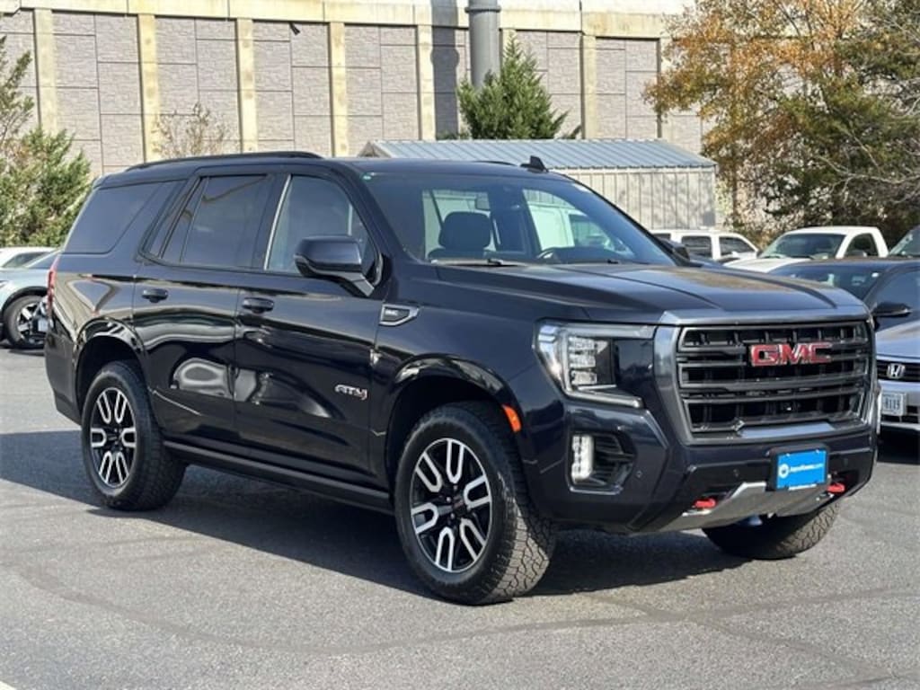 CARFAX One-Owner. Midnight Blue Metallic 2022 GMC Yukon AT4 ***ONE OWNER***, ***LOCAL TRADE***, ***DEALER MAINTAINED***, ***EXCELLENT CONDITION***, ***LOADED***, ***3RD ROW SEATS***, ***4 WHEEL DRIVE***, ***ALLOY WHEELS***, ***BACK UP CAMERA***, ***COOLED SEATS***, ***BLIND SIDE MONITORING***, ***FORWARD COLLISION ALERT***, ***LANE DEPARTURE WARNING***, ***HEATED SEATS***, ***LEATHER***, ***SIRIUS XM RADIO***, ***BOSE SOUND***, ***ON STAR***, ***POWER LIFTGATE***, ***POWER MOONROOF***, ***POWER SEATS***, ***REMOTE START***, ***SECOND ROW BUCKET SEATS***, 4WD, 2 Presets For Outside Rearview Mirrors, 3 Years of GMC Connected Services, 3rd Row 60/40 Power-Folding Split-Bench Seat, 3rd row seats: split-bench, 4-Wheel Disc Brakes, 9 Speakers, ABS brakes, Adaptive suspension, Air Conditioning, AM/FM radio: SiriusXM with 360L, AM/FM Stereo, Apple CarPlay/Android Auto, Auto High-beam Headlights, Auto-dimming door mirrors, Auto-dimming Rear-View mirror, Auto-leveling suspension, Automatic Emergency Braking, Automatic Stop/Start, Automatic temperature control, Black Roof-Mounted Luggage Rack Side Rails, Bose 9-Speaker Stereo Audio System Feature, Brake assist, Bright Front & Rear Door Sill Plates, Bumpers: body-color, Compass, Delay-off headlights, Driver door bin, Driver vanity mirror, Dual front impact airbags, Dual front side impact airbags, Dual-Pane Panoramic Power Sunroof, Electronic Stability Control, Emergency communication system: OnStar and GMC Connected Services capable, Following Distance Indicator, Forward Collision Alert, Four wheel independent suspension, Front & Rear Park Assist, Front anti-roll bar, Front Bucket Seats, Front dual zone A/C, Front fog lights, Front High-Approach Angle Fascia, Front Pedestrian Braking, Front reading lights, Fully automatic headlights, Garage door transmitter, Hands-Free Power Programmable Rear Liftgate, Heated & Ventilated Driver & Front Passenger Seats, Heated door mirrors, Heated rear seats, Heated Steering Wheel, Heated steering wheel, Heavy-Duty Air Filter, Hill Descent Control, Illuminated entry, Inside Rear-View Auto-Dimming Mirror, IntelliBeam Automatic High Beam On/Off, Lane Change Alert w/Side Blind Zone Alert, Lane Keep Assist w/Lane Departure Warning, Leather steering wheel, License Plate Front Mounting Package, Low tire pressure warning, Magnetic Ride Control Suspension, Memory seat, Navigation System, Not Equipped w/4-Way Driver & Fr Pass Pwr Lumbar, Not Equipped w/Front & Rear Park Assist, Not Equipped w/Heated Rear Outboard Seats, Not Equipped w/Heated Steering Wheel (DISC), Not Equipped w/Heated/Ventilated Front Seats, Not Equipped w/Steering Column Lock, Occupant sensing airbag, Outside Heated Power-Adjustable Mirrors, Outside temperature display, Overhead airbag, Overhead console, Panic alarm, Passenger vanity mirror, Perforated Leather Seating Surfaces, Power door mirrors, Power driver seat, Power Liftgate, Power passenger seat, Power Release 2nd Row 60/40 Split-Folding Bench Seat, Power Release 2nd Row Bucket Seats, Power steering, Power Tilt & Telescopic Steering Column, Power windows, Power-Retractable Assist Steps, Preferred Equipment Group 4SB, Rain sensing wipers, Rear air conditioning, Rear anti-roll bar, Rear Cross Traffic Alert, Rear reading lights, Rear seat center armrest, Rear window defroster, Red Horizontal-Mounted Recovery Hooks, Remote keyless entry, Roof rack: rails only, Safety Alert Seat, Security system, SiriusXM w/360L, Speed control, Speed-sensing steering, Spoiler, Start/Stop System Disable Button, Steering wheel memory, Steering wheel mounted audio controls, Tachometer, Telescoping steering wheel, Tilt steering wheel, Traction control, Trip computer, Turn signal indicator mirrors, Universal Home Remote, Ventilated front seats, Voltmeter, Wheel Locks (Set of 4) (LPO), Wheels: 20 x 9 6-Spoke Machined Aluminum, Wireless Charging, 4WD.