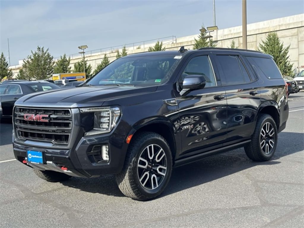CARFAX One-Owner. Midnight Blue Metallic 2022 GMC Yukon AT4 ***ONE OWNER***, ***LOCAL TRADE***, ***DEALER MAINTAINED***, ***EXCELLENT CONDITION***, ***LOADED***, ***3RD ROW SEATS***, ***4 WHEEL DRIVE***, ***ALLOY WHEELS***, ***BACK UP CAMERA***, ***COOLED SEATS***, ***BLIND SIDE MONITORING***, ***FORWARD COLLISION ALERT***, ***LANE DEPARTURE WARNING***, ***HEATED SEATS***, ***LEATHER***, ***SIRIUS XM RADIO***, ***BOSE SOUND***, ***ON STAR***, ***POWER LIFTGATE***, ***POWER MOONROOF***, ***POWER SEATS***, ***REMOTE START***, ***SECOND ROW BUCKET SEATS***, 4WD, 2 Presets For Outside Rearview Mirrors, 3 Years of GMC Connected Services, 3rd Row 60/40 Power-Folding Split-Bench Seat, 3rd row seats: split-bench, 4-Wheel Disc Brakes, 9 Speakers, ABS brakes, Adaptive suspension, Air Conditioning, AM/FM radio: SiriusXM with 360L, AM/FM Stereo, Apple CarPlay/Android Auto, Auto High-beam Headlights, Auto-dimming door mirrors, Auto-dimming Rear-View mirror, Auto-leveling suspension, Automatic Emergency Braking, Automatic Stop/Start, Automatic temperature control, Black Roof-Mounted Luggage Rack Side Rails, Bose 9-Speaker Stereo Audio System Feature, Brake assist, Bright Front & Rear Door Sill Plates, Bumpers: body-color, Compass, Delay-off headlights, Driver door bin, Driver vanity mirror, Dual front impact airbags, Dual front side impact airbags, Dual-Pane Panoramic Power Sunroof, Electronic Stability Control, Emergency communication system: OnStar and GMC Connected Services capable, Following Distance Indicator, Forward Collision Alert, Four wheel independent suspension, Front & Rear Park Assist, Front anti-roll bar, Front Bucket Seats, Front dual zone A/C, Front fog lights, Front High-Approach Angle Fascia, Front Pedestrian Braking, Front reading lights, Fully automatic headlights, Garage door transmitter, Hands-Free Power Programmable Rear Liftgate, Heated & Ventilated Driver & Front Passenger Seats, Heated door mirrors, Heated rear seats, Heated Steering Wheel, Heated steering wheel, Heavy-Duty Air Filter, Hill Descent Control, Illuminated entry, Inside Rear-View Auto-Dimming Mirror, IntelliBeam Automatic High Beam On/Off, Lane Change Alert w/Side Blind Zone Alert, Lane Keep Assist w/Lane Departure Warning, Leather steering wheel, License Plate Front Mounting Package, Low tire pressure warning, Magnetic Ride Control Suspension, Memory seat, Navigation System, Not Equipped w/4-Way Driver & Fr Pass Pwr Lumbar, Not Equipped w/Front & Rear Park Assist, Not Equipped w/Heated Rear Outboard Seats, Not Equipped w/Heated Steering Wheel (DISC), Not Equipped w/Heated/Ventilated Front Seats, Not Equipped w/Steering Column Lock, Occupant sensing airbag, Outside Heated Power-Adjustable Mirrors, Outside temperature display, Overhead airbag, Overhead console, Panic alarm, Passenger vanity mirror, Perforated Leather Seating Surfaces, Power door mirrors, Power driver seat, Power Liftgate, Power passenger seat, Power Release 2nd Row 60/40 Split-Folding Bench Seat, Power Release 2nd Row Bucket Seats, Power steering, Power Tilt & Telescopic Steering Column, Power windows, Power-Retractable Assist Steps, Preferred Equipment Group 4SB, Rain sensing wipers, Rear air conditioning, Rear anti-roll bar, Rear Cross Traffic Alert, Rear reading lights, Rear seat center armrest, Rear window defroster, Red Horizontal-Mounted Recovery Hooks, Remote keyless entry, Roof rack: rails only, Safety Alert Seat, Security system, SiriusXM w/360L, Speed control, Speed-sensing steering, Spoiler, Start/Stop System Disable Button, Steering wheel memory, Steering wheel mounted audio controls, Tachometer, Telescoping steering wheel, Tilt steering wheel, Traction control, Trip computer, Turn signal indicator mirrors, Universal Home Remote, Ventilated front seats, Voltmeter, Wheel Locks (Set of 4) (LPO), Wheels: 20" x 9" 6-Spoke Machined Aluminum, Wireless Charging, 4WD.