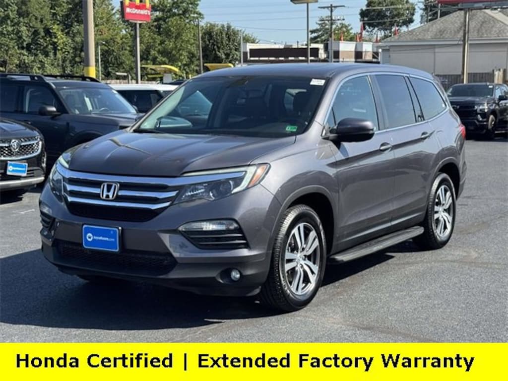CARFAX One-Owner. Certified. Modern Steel Metallic 2018 Honda Pilot EX-L w/Rear Entertainment System ***ONE OWNER***, ***LOCAL TRADE***, ***LOADED***, ***3RD ROW SEATS***, ***ALL WHEEL DRIVE***, ***ADAPTIVE CRUISE CONTROL***, ***ALLOY WHEELS***, ***BACK UP CAMERA***, ***FORWARD COLLISION ALERT***, ***LANE DEPARTURE WARNING***, ***HEATED SEATS***, ***LEATHER***, ***SIRIUS XM RADIO***, ***POWER LIFTGATE***, ***POWER MOONROOF***, ***POWER SEATS***, ***REAR ENTERTAINMENT***, ***REMOTE START***, ***LANE WATCH***, HondaTrue Used Certified, AWD, 18 Alloy Wheels, 3rd row seats: split-bench, 4-Wheel Disc Brakes, 4.25 Axle Ratio, 7 Speakers, A/V remote, ABS brakes, Air Conditioning, Alloy wheels, AM/FM radio: SiriusXM, Apple CarPlay/Android Auto, Auto-dimming Rear-View mirror, Automatic temperature control, Brake assist, Bumpers: body-color, Compass, Delay-off headlights, Driver door bin, Driver vanity mirror, Dual front impact airbags, Dual front side impact airbags, Electronic Stability Control, Exterior Parking Camera Rear, Four wheel independent suspension, Front anti-roll bar, Front Bucket Seats, Front Center Armrest, Front dual zone A/C, Front fog lights, Front reading lights, Fully automatic headlights, Garage door transmitter: HomeLink, Headphones, Heated door mirrors, Heated Front Bucket Seats, Heated front seats, Illuminated entry, Leather Shift Knob, Leather-Trimmed Seats, Low tire pressure warning, Occupant sensing airbag, Outside temperature display, Overhead airbag, Overhead console, Panic alarm, Passenger door bin, Passenger vanity mirror, Power door mirrors, Power driver seat, Power Liftgate, Power moonroof, Power passenger seat, Power steering, Power windows, Radio data system, Radio: AM/FM Audio System, Rear air conditioning, Rear anti-roll bar, Rear audio controls, Rear reading lights, Rear seat center armrest, Rear window defroster, Rear window wiper, Remote keyless entry, Security system, SiriusXM Radio, Speed control, Speed-sensing steering, Speed-Sensitive Wipers, Split folding rear seat, Spoiler, Steering wheel mounted audio controls, Tachometer, Telescoping steering wheel, Tilt steering wheel, Traction control, Trip computer, Variably intermittent wipers, AWD.