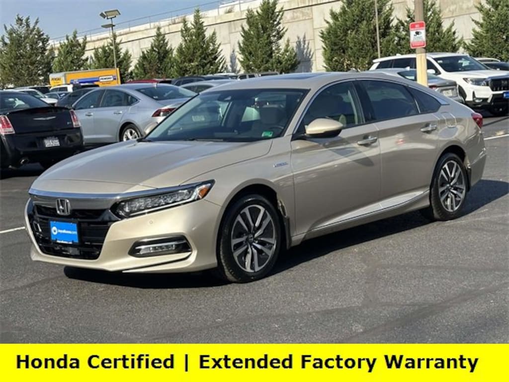CARFAX One-Owner. Certified. Champagne Frost Pearl 2019 Honda Accord Hybrid Touring ***ONE OWNER***, ***LOW MILES***, ***LOCAL TRADE***, ***LOADED***, ***ADAPTIVE CRUISE CONTROL***, ***ALLOY WHEELS***, ***BACK UP CAMERA***, ***HEADS UP DISPLAY***, ***COOLED SEATS***, ***BLIND SIDE MONITORING***, ***FORWARD COLLISION ALERT***, ***LANE DEPARTURE WARNING***, ***HEATED SEATS***, ***LEATHER***, ***SIRIUS XM RADIO***, ***NAVIGATION***, ***POWER MOONROOF***, ***POWER SEATS***, ***REMOTE START***, HondaTrue Used Certified, 2.0L 4-Cylinder DOHC 16V i-VTEC, 10 Speakers, 17 Machine-Finished Alloy Wheels, 4-Wheel Disc Brakes, ABS brakes, Adaptive suspension, Air Conditioning, Alloy wheels, AM/FM radio: SiriusXM, Apple CarPlay/Android Auto, Auto High-beam Headlights, Auto-dimming Rear-View mirror, Automatic temperature control, Blind Spot Information (BSI) System warning, Brake assist, Bumpers: body-color, Compass, Delay-off headlights, Driver door bin, Driver vanity mirror, Dual front impact airbags, Dual front side impact airbags, Electronic Stability Control, Emergency communication system: HondaLink, Exterior Parking Camera Rear, Forward collision: Collision Mitigation Braking System (CMBS) + FCW mitigation, Four wheel independent suspension, Front anti-roll bar, Front Bucket Seats, Front Center Armrest, Front dual zone A/C, Front fog lights, Front reading lights, Fully automatic headlights, Garage door transmitter: HomeLink, Heads-Up Display, Heated & Ventilated Front Bucket Seats, Heated door mirrors, Heated front seats, Heated rear seats, Illuminated entry, Knee airbag, Leather steering wheel, Leather-Trimmed Seats, Low tire pressure warning, Memory seat, Navigation System, Occupant sensing airbag, Outside temperature display, Overhead airbag, Overhead console, Panic alarm, Passenger door bin, Passenger vanity mirror, Power door mirrors, Power driver seat, Power moonroof, Power passenger seat, Power steering, Power windows, Radio data system, Radio: 450-Watt AM/FM/HD Premium Audio System, Rain sensing wipers, Rear anti-roll bar, Rear seat center armrest, Rear window defroster, Remote keyless entry, Security system, Speed control, Speed-sensing steering, Speed-Sensitive Wipers, Split folding rear seat, Steering wheel mounted audio controls, Telescoping steering wheel, Tilt steering wheel, Traction control, Trip computer, Turn signal indicator mirrors, Variably intermittent wipers, Ventilated front seats, 2.0L 4-Cylinder DOHC 16V i-VTEC.