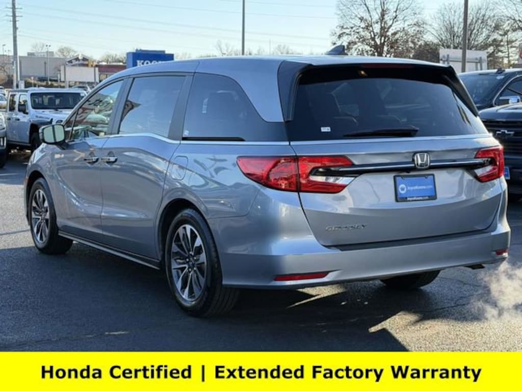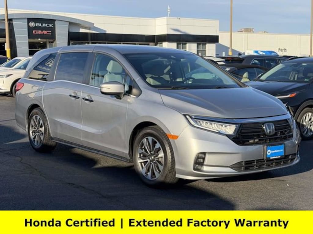 CARFAX One-Owner. Clean CARFAX. Certified. Lunar Silver Metallic 2021 Honda Odyssey EX-L ***ONE OWNER***, ***3RD ROW SEATS***, ***ADAPTIVE CRUISE CONTROL***, ***ALLOY WHEELS***, ***BACK UP CAMERA***, ***DUAL POWER SLIDING DOORS***, ***BLIND SIDE MONITORING***, ***FORWARD COLLISION ALERT***, ***LANE DEPARTURE WARNING***, ***HEATED SEATS***, ***LEATHER***, ***SIRIUS XM RADIO***, ***POWER LIFTGATE***, ***POWER MOONROOF***, ***POWER SEATS***, ***REMOTE START***, HondaTrue Certified Certified, 18 Machine-Finished Alloy Wheels, 3.61 Axle Ratio, 3rd row seats: split-bench, 4-Wheel Disc Brakes, 7 Speakers, A/V remote: CabinControl, ABS brakes, Adaptive Cruise Control: Adaptive Cruise Control (ACC) with Low-Speed Follow, Air Conditioning, Alloy wheels, AM/FM radio: SiriusXM, Anti-whiplash front head restraints, Apple CarPlay/Android Auto, Auto High-beam Headlights, Auto-dimming Rear-View mirror, Automatic temperature control, Blind Spot Information (BSI) System warning, Brake assist, Bumpers: body-color, Delay-off headlights, Driver door bin, Driver vanity mirror, Driver's Seat Mounted Armrest, Dual front impact airbags, Dual front side impact airbags, Electronic Stability Control, Exterior Parking Camera Rear, Forward collision: Collision Mitigation Braking System (CMBS) + FCW mitigation, Four wheel independent suspension, Front anti-roll bar, Front Bucket Seats, Front dual zone A/C, Front fog lights, Front reading lights, Fully automatic headlights, Garage door transmitter: HomeLink, Heated door mirrors, Heated Front Bucket Seats, Heated front seats, Illuminated entry, Knee airbag, Lane departure: Lane Keeping Assist System (LKAS) active, Leather Seat Trim, Leather steering wheel, Low tire pressure warning, Memory seat, Occupant sensing airbag, Outside temperature display, Overhead airbag, Overhead console, Panic alarm, Passenger door bin, Passenger seat mounted armrest, Passenger vanity mirror, Power door mirrors, Power driver seat, Power Liftgate, Power moonroof, Power passenger seat, Power steering, Power windows, Radio data system, Radio: 160-Watt AM/FM/HD/SiriusXM Audio System, Rear air conditioning, Rear anti-roll bar, Rear reading lights, Rear seat center armrest, Rear window defroster, Rear window wiper, Reclining 3rd row seat, Remote keyless entry, Security system, Speed control, Speed-sensing steering, Speed-Sensitive Wipers, Split folding rear seat, Spoiler, Steering wheel mounted audio controls, Tachometer, Telescoping steering wheel, Tilt steering wheel, Traction control, Trip computer, Turn signal indicator mirrors, Variably intermittent wipers.