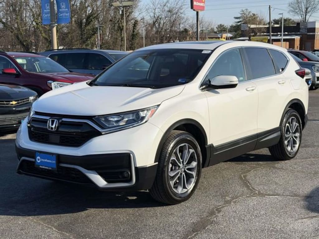 CARFAX One-Owner. Clean CARFAX. Certified. Platinum White Pearl 2022 Honda CR-V EX-L ***ONE OWNER***, ***LOW MILES***, ***DEALER MAINTAINED***, ***EXCELLENT CONDITION***, ***LOADED***, ***HONDA CERTIFIED***, ***ALL WHEEL DRIVE***, ***ADAPTIVE CRUISE CONTROL***, ***ALLOY WHEELS***, ***BACK UP CAMERA***, ***BLIND SIDE MONITORING***, ***FORWARD COLLISION ALERT***, ***LANE DEPARTURE WARNING***, ***HEATED SEATS***, ***LEATHER***, ***SIRIUS XM RADIO***, ***POWER LIFTGATE***, ***POWER MOONROOF***, ***POWER SEATS***, ***REMOTE START***, HondaTrue Certified Certified, AWD, 18 Alloy Wheels, 4-Wheel Disc Brakes, 5.64 Axle Ratio, 8 Speakers, ABS brakes, Adaptive Cruise Control: Adaptive Cruise Control (ACC) with Low-Speed Follow, Air Conditioning, Alloy wheels, AM/FM radio: SiriusXM, Apple CarPlay/Android Auto, Auto High-beam Headlights, Auto-dimming Rear-View mirror, Automatic temperature control, Blind Spot Information (BSI) System warning, Brake assist, Bumpers: body-color, Compass, Delay-off headlights, Driver door bin, Driver vanity mirror, Dual front impact airbags, Dual front side impact airbags, Electronic Stability Control, Exterior Parking Camera Rear, Forward collision: Collision Mitigation Braking System (CMBS) + FCW mitigation, Four wheel independent suspension, Front anti-roll bar, Front Bucket Seats, Front Center Armrest, Front dual zone A/C, Front fog lights, Front reading lights, Garage door transmitter: HomeLink, Heated door mirrors, Heated Front Bucket Seats, Heated front seats, Illuminated entry, Leather Seat Trim, Leather Shift Knob, Low tire pressure warning, Memory seat, Occupant sensing airbag, Outside temperature display, Overhead airbag, Overhead console, Panic alarm, Passenger door bin, Passenger vanity mirror, Power door mirrors, Power driver seat, Power Liftgate, Power moonroof, Power passenger seat, Power steering, Power windows, Radio data system, Radio: 180-Watt AM/FM/HD/SiriusXM Audio System, Rear anti-roll bar, Rear seat center armrest, Rear window defroster, Rear window wiper, Remote keyless entry, Security system, Speed control, Speed-sensing steering, Speed-Sensitive Wipers, Split folding rear seat, Spoiler, Steering wheel mounted audio controls, Tachometer, Telescoping steering wheel, Tilt steering wheel, Traction control, Trip computer, Turn signal indicator mirrors, Variably intermittent wipers, AWD.Here is another hand selected pre owned vehicle from Joyce Koons Honda Buick GMC. Odometer is 12610 miles below market average! 27/32 City/Highway MPGHondaTrue Certified Details:* 182 Point Inspection* Limited Warranty: 24 Month/100,000 Mile (whichever comes first) after new car warranty expires or from certified purchase date* Powertrain Limited Warranty: 84 Month/100,000 Mile (whichever comes first) from original in-service date* Transferable Warranty* Warranty Deductible: $0* Vehicles purchased within New Vehicle Limited Warranty period: extends New Vehicle Limited Warranty to 5 years*/60,000 miles*. Honda Care Roadside Assistance for 2 year/100,000 miles (whichever occurs first). Up to two complimentary oil changes within the first year of ownership. SiriusXM 90-Day Trial.* Roadside Assistance* Vehicle History
