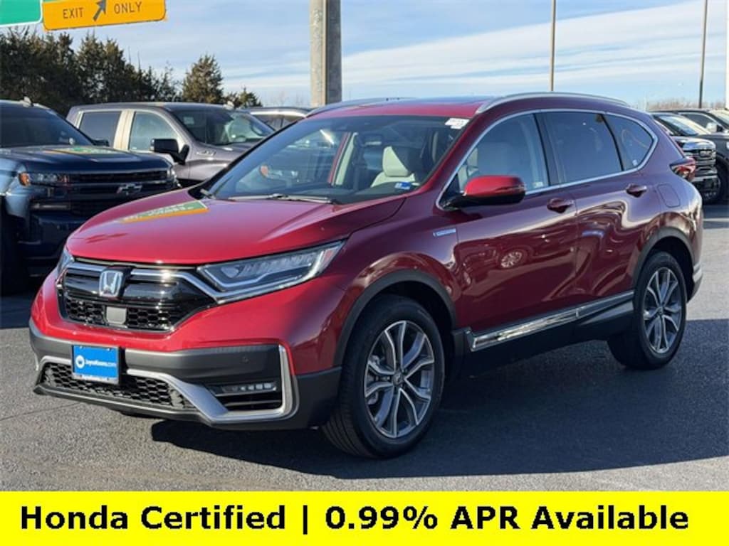 CARFAX One-Owner. Clean CARFAX. Certified. Radiant Red Metallic 2022 Honda CR-V Hybrid Touring ***ONE OWNER***, ***LOW MILES***, ***LOCAL TRADE***, ***DEALER MAINTAINED***, ***EXCELLENT CONDITION***, ***LOADED***, ***ALL WHEEL DRIVE***, ***ADAPTIVE CRUISE CONTROL***, ***ALLOY WHEELS***, ***BACK UP CAMERA***, ***BLIND SIDE MONITORING***, ***FORWARD COLLISION ALERT***, ***LANE DEPARTURE WARNING***, ***HEATED SEATS***, ***LEATHER***, ***SIRIUS XM RADIO***, ***NAVIGATION***, ***POWER LIFTGATE***, ***POWER MOONROOF***, ***POWER SEATS***, ***REMOTE START***, HondaTrue Certified Certified, 2.0L I4 DOHC 16V, 3.89 Axle Ratio, 4-Wheel Disc Brakes, 9 Speakers, ABS brakes, Adaptive Cruise Control: Adaptive Cruise Control (ACC) with Low-Speed Follow, Air Conditioning, Alloy wheels, AM/FM radio: SiriusXM, Apple CarPlay/Android Auto, Auto High-beam Headlights, Auto-dimming Rear-View mirror, Automatic temperature control, Blind Spot Information (BSI) System warning, Brake assist, Bumpers: body-color, Compass, Delay-off headlights, Driver door bin, Driver vanity mirror, Dual front impact airbags, Dual front side impact airbags, Electronic Stability Control, Exterior Parking Camera Rear, Forward collision: Collision Mitigation Braking System (CMBS) + FCW mitigation, Four wheel independent suspension, Front anti-roll bar, Front Bucket Seats, Front Center Armrest, Front dual zone A/C, Front fog lights, Front reading lights, Garage door transmitter: HomeLink, Heated door mirrors, Heated Front Bucket Seats, Heated front seats, Heated steering wheel, Illuminated entry, Leather Seat Trim, Low tire pressure warning, Memory seat, Navigation system: Honda Satellite-Linked Navigation System, Occupant sensing airbag, Outside temperature display, Overhead airbag, Overhead console, Panic alarm, Passenger door bin, Passenger vanity mirror, Power door mirrors, Power driver seat, Power Liftgate, Power moonroof, Power passenger seat, Power steering, Power windows, Radio data system, Radio: 330-Watt AM/FM/HD/SiriusXM Prem Audio Sys, Rain sensing wipers, Rear anti-roll bar, Rear seat center armrest, Rear window defroster, Rear window wiper, Remote keyless entry, Roof rack: rails only, Security system, Speed control, Speed-sensing steering, Speed-Sensitive Wipers, Split folding rear seat, Spoiler, Steering wheel mounted audio controls, Telescoping steering wheel, Tilt steering wheel, Traction control, Trip computer, Turn signal indicator mirrors, Variably intermittent wipers, Wheels: 19 Machine-Finished Alloy w/Gray Inserts, 2.0L I4 DOHC 16V.