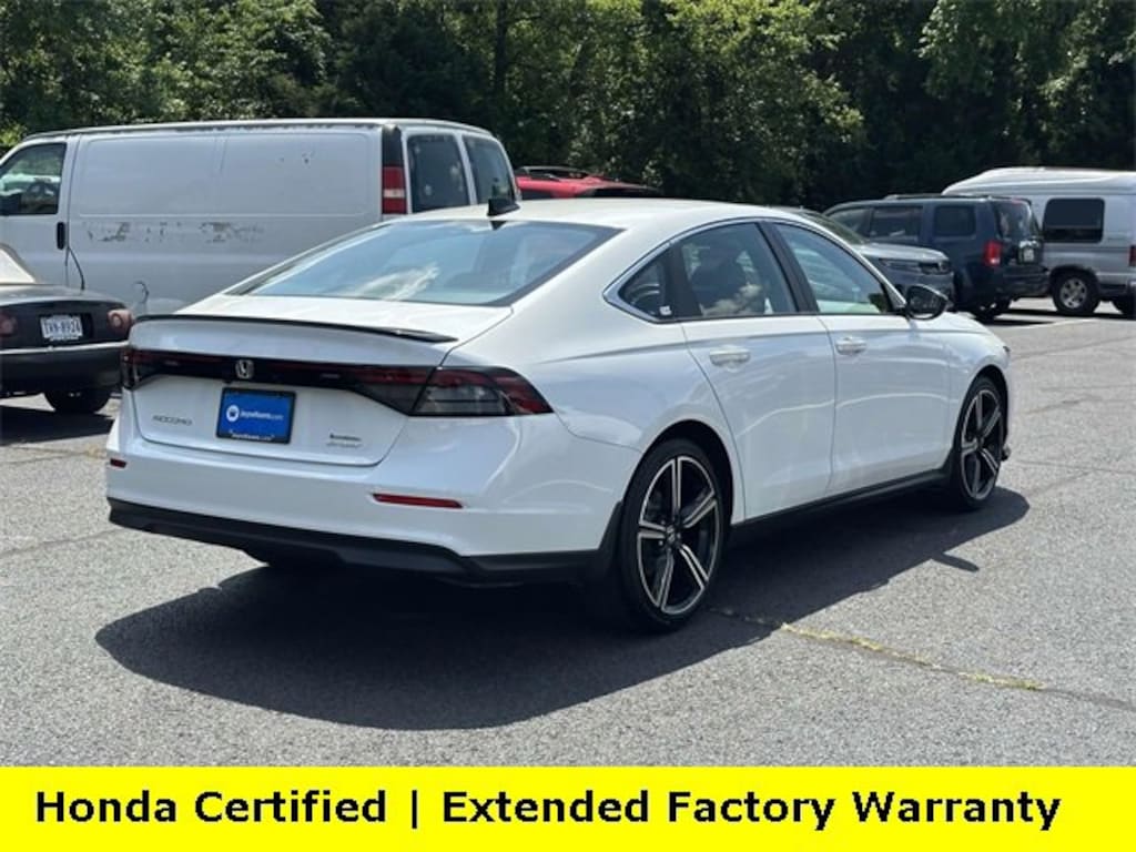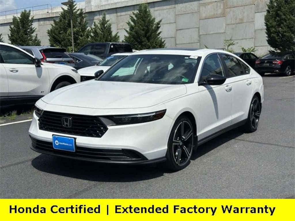 CARFAX One-Owner. Clean CARFAX. Certified. Platinum White Pearl 2024 Honda Accord Hybrid Sport ***ONE OWNER***, ***LOW MILES***, ***DEALER MAINTAINED***, ***EXCELLENT CONDITION***, ***HONDA CERTIFIED***, ***ADAPTIVE CRUISE CONTROL***, ***ALLOY WHEELS***, ***BACK UP CAMERA***, ***BLIND SIDE MONITORING***, ***FORWARD COLLISION ALERT***, ***LANE DEPARTURE WARNING***, ***POWER MOONROOF***, ***POWER SEATS***, ***REMOTE START***, HondaTrue Certified Certified, 2.0L 16V DOHC, 4-Wheel Disc Brakes, 8 Speakers, ABS brakes, Adaptive Cruise Control: Adaptive Cruise Control (ACC) with Low-Speed Follow, Air Conditioning, Alloy wheels, AM/FM radio, Apple CarPlay/Android Auto, Auto High-beam Headlights, Automatic temperature control, Blind Spot Information (BSI) System warning, Brake assist, Bumpers: body-color, Compass, Delay-off headlights, Driver door bin, Driver vanity mirror, Dual front impact airbags, Dual front side impact airbags, Electronic Stability Control, Emergency communication system: HondaLink, Exterior Parking Camera Rear, Fabric Seat Trim, Four wheel independent suspension, Front anti-roll bar, Front Bucket Seats, Front Center Armrest, Front dual zone A/C, Front reading lights, Fully automatic headlights, Illuminated entry, Knee airbag, Lane departure: Lane Keeping Assist System (LKAS) active, Leather Shift Knob, Leather steering wheel, Low tire pressure warning, Occupant sensing airbag, Outside temperature display, Overhead airbag, Overhead console, Panic alarm, Passenger door bin, Passenger vanity mirror, Power door mirrors, Power driver seat, Power moonroof, Power steering, Power windows, Radio data system, Radio: 180-Watt Audio System, Rear anti-roll bar, Rear reading lights, Rear seat center armrest, Rear side impact airbag, Rear window defroster, Remote keyless entry, Security system, Speed control, Speed-sensing steering, Speed-Sensitive Wipers, Split folding rear seat, Spoiler, Steering wheel mounted audio controls, Telescoping steering wheel, Tilt steering wheel, Traction control, Trip computer, Variably intermittent wipers, Wheels: 19 x 8.5J Berlina Black, 2.0L 16V DOHC.