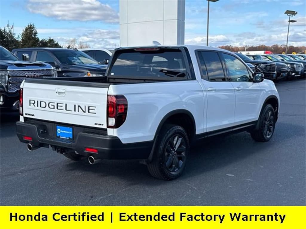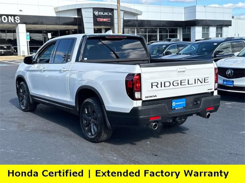 Clean CARFAX. Certified. Platinum White 2024 Honda Ridgeline Sport ***ONE OWNER***, ***LOW MILES***, ***DEALER MAINTAINED***, ***EXCELLENT CONDITION***, ***HONDA CERTIFIED***, ***ALL WHEEL DRIVE***, ***ADAPTIVE CRUISE CONTROL***, ***ALLOY WHEELS***, ***BACK UP CAMERA***, ***BED LINER***, ***BLIND SIDE MONITORING***, ***FORWARD COLLISION ALERT***, ***LANE DEPARTURE WARNING***, ***TOW PACKAGE***, HondaTrue Certified Certified, Black Cloth, Honda Emblem (PPO), Ridgeline Inserts (PPO), Sport Emblem (PPO), Tailgate Blackout Package, 4-Wheel Disc Brakes, 4.33 Axle Ratio, 7 Speakers, ABS brakes, Air Conditioning, Alloy wheels, AM/FM radio, Automatic temperature control, Blind Spot Information (BSI) System warning, Bluetooth® Hands-Free Link, Brake assist, Bumpers: body-color, Cloth Seat Trim, Delay-off headlights, Driver door bin, Driver vanity mirror, Driver's Seat Mounted Armrest, Dual front impact airbags, Dual front side impact airbags, Electronic Stability Control, Emergency communication system: HondaLink Assist, Exterior Parking Camera Rear, Four wheel independent suspension, Front anti-roll bar, Front Bucket Seats, Front dual zone A/C, Front fog lights, Fully automatic headlights, Illuminated entry, Low tire pressure warning, Occupant sensing airbag, Outside temperature display, Overhead airbag, Overhead console, Panic alarm, Passenger door bin, Passenger seat mounted armrest, Passenger vanity mirror, Power door mirrors, Power steering, Power windows, Radio data system, Radio: 215-Watt Audio System w/7 Speakers, Rear air conditioning, Rear anti-roll bar, Rear reading lights, Rear seat center armrest, Rear step bumper, Rear window defroster, Remote keyless entry, Security system, Speed control, Speed-sensing steering, Split folding rear seat, Steering wheel mounted audio controls, Tachometer, Telescoping steering wheel, Tilt steering wheel, Traction control, Trip computer, Variably intermittent wipers, Wheels: 18 Shark Gray Alloy, Wireless Apple CarPlay/Wireless Android Auto, Black Cloth, Honda Emblem (PPO), Ridgeline Inserts (PPO), Sport Emblem (PPO), Tailgate Blackout Package.