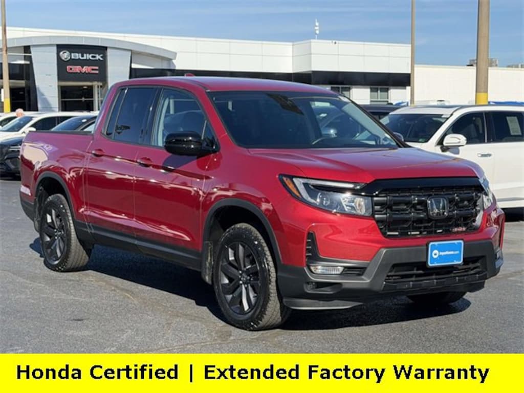 CARFAX One-Owner. Clean CARFAX. Certified. Radiant Red 2024 Honda Ridgeline Sport ***ONE OWNER***, ***LOW MILES***, ***DEALER MAINTAINED***, ***EXCELLENT CONDITION***, ***HONDA CERTIFIED***, ***ALL WHEEL DRIVE***, ***ADAPTIVE CRUISE CONTROL***, ***ALLOY WHEELS***, ***BACK UP CAMERA***, ***BED LINER***, ***BLIND SIDE MONITORING***, ***FORWARD COLLISION ALERT***, ***LANE DEPARTURE WARNING***, ***TOW PACKAGE***, HondaTrue Certified Certified, Black Cloth, Honda Emblem (PPO), Ridgeline Inserts (PPO), Sport Emblem (PPO), Tailgate Blackout Package, 4-Wheel Disc Brakes, 4.33 Axle Ratio, 7 Speakers, ABS brakes, Air Conditioning, Alloy wheels, AM/FM radio, Automatic temperature control, Blind Spot Information (BSI) System warning, Bluetooth® Hands-Free Link, Brake assist, Bumpers: body-color, Cloth Seat Trim, Delay-off headlights, Driver door bin, Driver vanity mirror, Driver's Seat Mounted Armrest, Dual front impact airbags, Dual front side impact airbags, Electronic Stability Control, Emergency communication system: HondaLink Assist, Exterior Parking Camera Rear, Four wheel independent suspension, Front anti-roll bar, Front Bucket Seats, Front dual zone A/C, Front fog lights, Fully automatic headlights, Illuminated entry, Low tire pressure warning, Occupant sensing airbag, Outside temperature display, Overhead airbag, Overhead console, Panic alarm, Passenger door bin, Passenger seat mounted armrest, Passenger vanity mirror, Power door mirrors, Power steering, Power windows, Radio data system, Radio: 215-Watt Audio System w/7 Speakers, Rear air conditioning, Rear anti-roll bar, Rear reading lights, Rear seat center armrest, Rear step bumper, Rear window defroster, Remote keyless entry, Security system, Speed control, Speed-sensing steering, Split folding rear seat, Steering wheel mounted audio controls, Tachometer, Telescoping steering wheel, Tilt steering wheel, Traction control, Trip computer, Variably intermittent wipers, Wheels: 18 Shark Gray Alloy, Wireless Apple CarPlay/Wireless Android Auto, Black Cloth, Honda Emblem (PPO), Ridgeline Inserts (PPO), Sport Emblem (PPO), Tailgate Blackout Package.