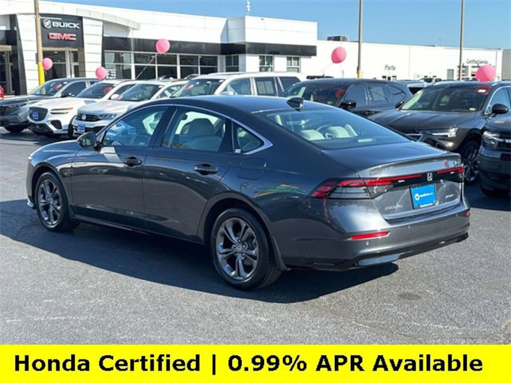 CARFAX One-Owner. Clean CARFAX. Certified. Meteorite Gray Metallic 2025 Honda Accord Hybrid EX-L ***ONE OWNER***, ***LOW MILES***, ***DEALER MAINTAINED***, ***EXCELLENT CONDITION***, ***HONDA CERTIFIED***, ***ADAPTIVE CRUISE CONTROL***, ***ALLOY WHEELS***, ***BACK UP CAMERA***, ***BLIND SIDE MONITORING***, ***FORWARD COLLISION ALERT***, ***LANE DEPARTURE WARNING***, ***HEATED SEATS***, ***LEATHER***, ***POWER MOONROOF***, ***POWER SEATS***, ***REMOTE START***, HondaTrue Certified Certified, 2.0L I4 DOHC 16V, 4-Wheel Disc Brakes, 8 Speakers, ABS brakes, Adaptive Cruise Control: Adaptive Cruise Control (ACC) with Low-Speed Follow, Air Conditioning, Alloy wheels, AM/FM radio, Apple CarPlay/Android Auto, Auto High-beam Headlights, Auto-dimming Rear-View mirror, Automatic temperature control, Blind Spot Information (BSI) System warning, Brake assist, Bumpers: body-color, Compass, Delay-off headlights, Driver door bin, Driver vanity mirror, Dual front impact airbags, Dual front side impact airbags, Electronic Stability Control, Emergency communication system: HondaLink, Exterior Parking Camera Rear, Four wheel independent suspension, Front anti-roll bar, Front Bucket Seats, Front Center Armrest, Front dual zone A/C, Front reading lights, Fully automatic headlights, Heated door mirrors, Heated Front Bucket Seats, Heated front seats, Illuminated entry, Knee airbag, Lane departure: Lane Keeping Assist System (LKAS) active, Leather Shift Knob, Leather steering wheel, Leather-Trimmed Seat Trim, Low tire pressure warning, Memory seat, Occupant sensing airbag, Outside temperature display, Overhead airbag, Overhead console, Panic alarm, Passenger door bin, Passenger vanity mirror, Power door mirrors, Power driver seat, Power moonroof, Power passenger seat, Power steering, Power windows, Radio data system, Radio: 180-Watt Audio System, Rear anti-roll bar, Rear reading lights, Rear seat center armrest, Rear side impact airbag, Rear window defroster, Remote keyless entry, Security system, Speed control, Speed-sensing steering, Speed-Sensitive Wipers, Split folding rear seat, Steering wheel mounted audio controls, Telescoping steering wheel, Tilt steering wheel, Traction control, Trip computer, Turn signal indicator mirrors, Variably intermittent wipers, Wheels: 17 x 7.5J Pewter Gray, 2.0L I4 DOHC 16V.Here is another hand selected pre owned vehicle from Joyce Koons Honda Buick GMC. 51/44 City/Highway MPGHondaTrue Certified Details:* Warranty Deductible: $0* Limited Warranty: 24 Month/100,000 Mile (whichever comes first) after new car warranty expires or from certified purchase date* 182 Point Inspection* Powertrain Limited Warranty: 84 Month/100,000 Mile (whichever comes first) from original in-service date* Transferable Warranty* Vehicles purchased within New Vehicle Limited Warranty period: extends New Vehicle Limited Warranty to 5 years*/60,000 miles*. Honda Care Roadside Assistance for 2 year/100,000 miles (whichever occurs first). Up to two complimentary oil changes within the first year of ownership. SiriusXM 90-Day Trial.* Vehicle History* Roadside Assistance