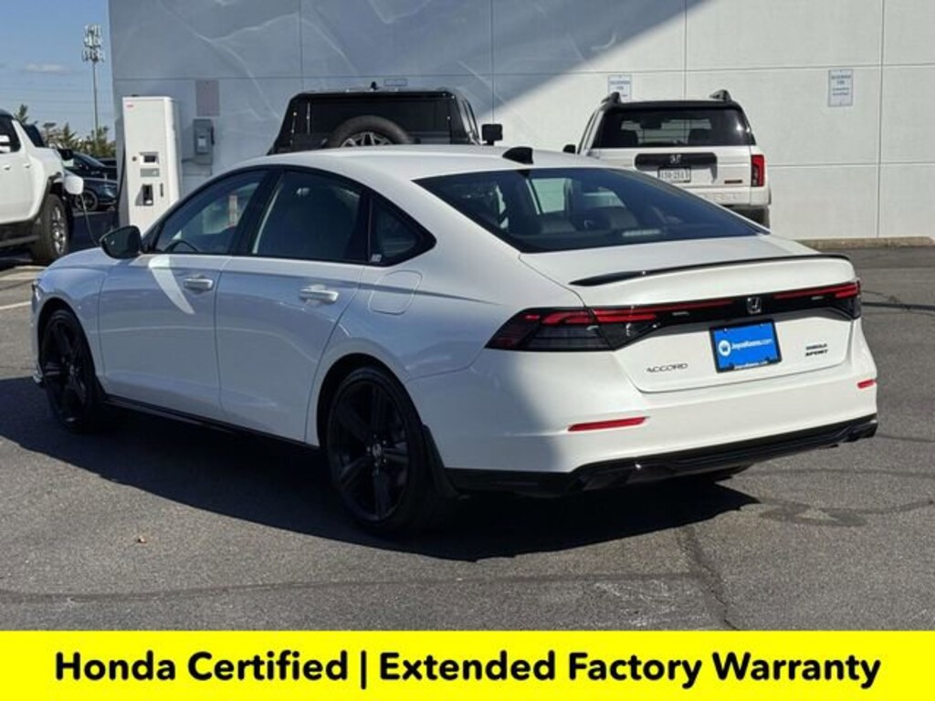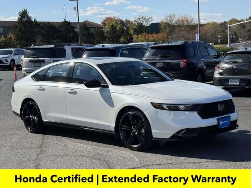 CARFAX One-Owner. Clean CARFAX. Certified. Platinum White Pearl 2025 Honda Accord Hybrid Sport-L ***ONE OWNER***, ***LOW MILES***, ***DEALER MAINTAINED***, ***EXCELLENT CONDITION***, ***HONDA CERTIFIED***, ***ADAPTIVE CRUISE CONTROL***, ***ALLOY WHEELS***, ***BACK UP CAMERA***, ***BLIND SIDE MONITORING***, ***FORWARD COLLISION ALERT***, ***LANE DEPARTURE WARNING***, ***HEATED SEATS***, ***LEATHER***, ***POWER MOONROOF***, ***POWER SEATS***, ***REMOTE START***, HondaTrue Certified Certified, 2.0L I4 DOHC 16V, 4-Wheel Disc Brakes, 8 Speakers, ABS brakes, Adaptive Cruise Control: Adaptive Cruise Control (ACC) with Low-Speed Follow, Air Conditioning, Alloy wheels, AM/FM radio, Apple CarPlay/Android Auto, Auto High-beam Headlights, Automatic temperature control, Blind Spot Information (BSI) System warning, Brake assist, Bumpers: body-color, Compass, Delay-off headlights, Driver door bin, Driver vanity mirror, Dual front impact airbags, Dual front side impact airbags, Electronic Stability Control, Emergency communication system: HondaLink, Exterior Parking Camera Rear, Four wheel independent suspension, Front anti-roll bar, Front Bucket Seats, Front Center Armrest, Front dual zone A/C, Front reading lights, Fully automatic headlights, Heated Front Bucket Seats, Heated front seats, Illuminated entry, Knee airbag, Lane departure: Lane Keeping Assist System (LKAS) active, Leather Shift Knob, Leather steering wheel, Leather-Trimmed Seat Trim, Low tire pressure warning, Memory seat, Occupant sensing airbag, Outside temperature display, Overhead airbag, Overhead console, Panic alarm, Passenger door bin, Passenger vanity mirror, Power door mirrors, Power driver seat, Power moonroof, Power passenger seat, Power steering, Power windows, Radio data system, Radio: 180-Watt Audio System, Rear anti-roll bar, Rear reading lights, Rear seat center armrest, Rear side impact airbag, Rear window defroster, Remote keyless entry, Security system, Speed control, Speed-sensing steering, Speed-Sensitive Wipers, Split folding rear seat, Spoiler, Steering wheel mounted audio controls, Telescoping steering wheel, Tilt steering wheel, Traction control, Trip computer, Variably intermittent wipers, Wheels: 19 x 8.5J Matte Berlina Black, 2.0L I4 DOHC 16V.