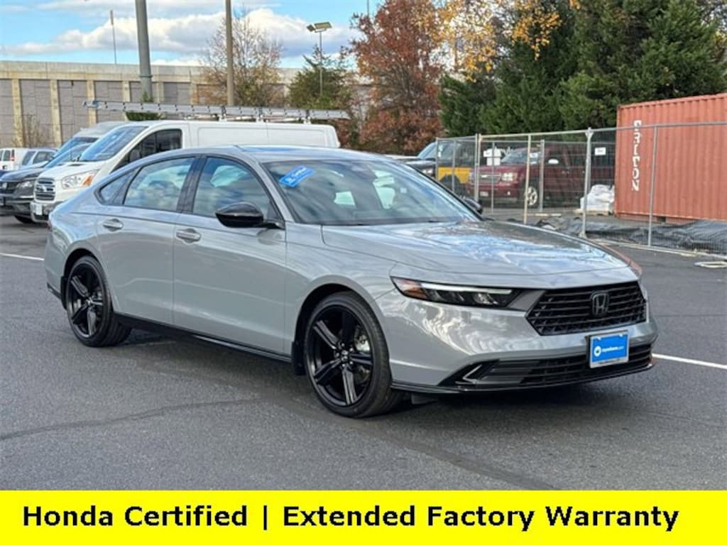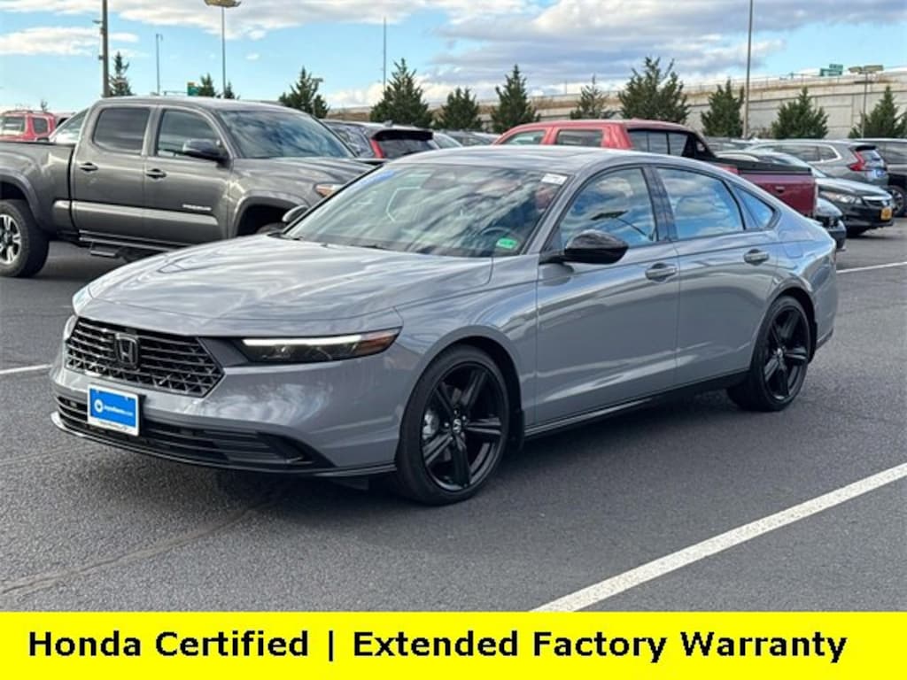 Clean CARFAX. Certified. Urban Gray Pearl 2025 Honda Accord Hybrid Sport-L ***ONE OWNER***, ***LOW MILES***, ***DEALER MAINTAINED***, ***EXCELLENT CONDITION***, ***HONDA CERTIFIED***, ***ADAPTIVE CRUISE CONTROL***, ***ALLOY WHEELS***, ***BACK UP CAMERA***, ***BLIND SIDE MONITORING***, ***FORWARD COLLISION ALERT***, ***LANE DEPARTURE WARNING***, ***HEATED SEATS***, ***LEATHER***, ***POWER MOONROOF***, ***POWER SEATS***, ***REMOTE START***, HondaTrue Certified Certified, 2.0L I4 DOHC 16V, 4-Wheel Disc Brakes, 8 Speakers, ABS brakes, Adaptive Cruise Control: Adaptive Cruise Control (ACC) with Low-Speed Follow, Air Conditioning, Alloy wheels, AM/FM radio, Apple CarPlay/Android Auto, Auto High-beam Headlights, Automatic temperature control, Blind Spot Information (BSI) System warning, Brake assist, Bumpers: body-color, Compass, Delay-off headlights, Driver door bin, Driver vanity mirror, Dual front impact airbags, Dual front side impact airbags, Electronic Stability Control, Emergency communication system: HondaLink, Exterior Parking Camera Rear, Four wheel independent suspension, Front anti-roll bar, Front Bucket Seats, Front Center Armrest, Front dual zone A/C, Front reading lights, Fully automatic headlights, Heated Front Bucket Seats, Heated front seats, Illuminated entry, Knee airbag, Lane departure: Lane Keeping Assist System (LKAS) active, Leather Shift Knob, Leather steering wheel, Leather-Trimmed Seat Trim, Low tire pressure warning, Memory seat, Occupant sensing airbag, Outside temperature display, Overhead airbag, Overhead console, Panic alarm, Passenger door bin, Passenger vanity mirror, Power door mirrors, Power driver seat, Power moonroof, Power passenger seat, Power steering, Power windows, Radio data system, Radio: 180-Watt Audio System, Rear anti-roll bar, Rear reading lights, Rear seat center armrest, Rear side impact airbag, Rear window defroster, Remote keyless entry, Security system, Speed control, Speed-sensing steering, Speed-Sensitive Wipers, Split folding rear seat, Spoiler, Steering wheel mounted audio controls, Telescoping steering wheel, Tilt steering wheel, Traction control, Trip computer, Variably intermittent wipers, Wheels: 19 x 8.5J Matte Berlina Black, 2.0L I4 DOHC 16V.