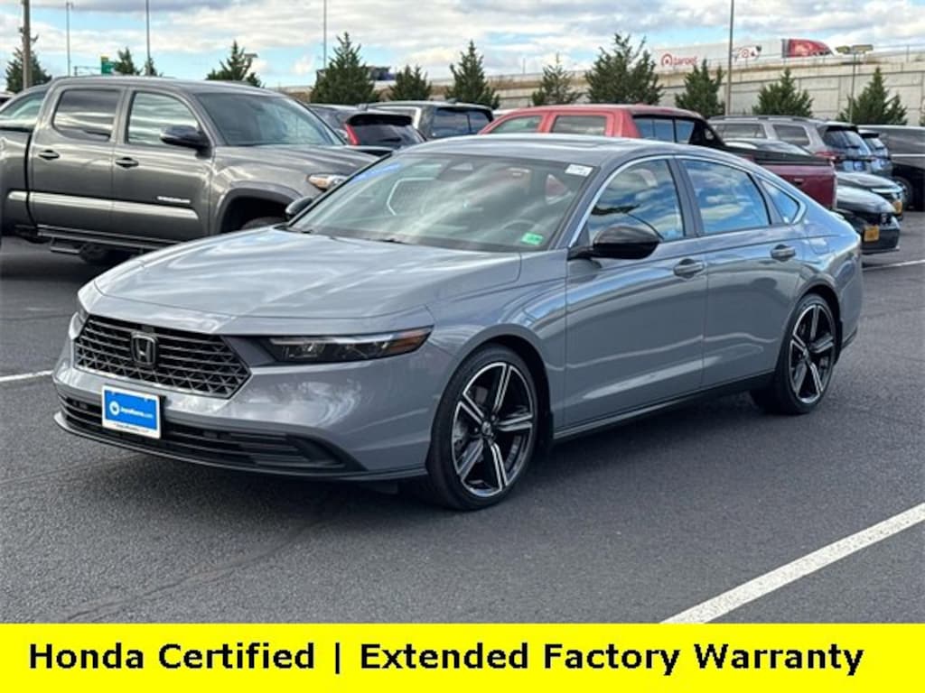 Clean CARFAX. Certified. Urban Gray Pearl 2025 Honda Accord Hybrid Sport ***ONE OWNER***, ***LOW MILES***, ***DEALER MAINTAINED***, ***EXCELLENT CONDITION***, ***HONDA CERTIFIED***, ***ADAPTIVE CRUISE CONTROL***, ***ALLOY WHEELS***, ***BACK UP CAMERA***, ***BLIND SIDE MONITORING***, ***FORWARD COLLISION ALERT***, ***LANE DEPARTURE WARNING***, ***POWER MOONROOF***, ***POWER SEAT***, ***REMOTE START***, HondaTrue Certified Certified, 2.0L I4 DOHC 16V, 4-Wheel Disc Brakes, 8 Speakers, ABS brakes, Adaptive Cruise Control: Adaptive Cruise Control (ACC) with Low-Speed Follow, Air Conditioning, Alloy wheels, AM/FM radio, Apple CarPlay/Android Auto, Auto High-beam Headlights, Automatic temperature control, Blind Spot Information (BSI) System warning, Brake assist, Bumpers: body-color, Compass, Delay-off headlights, Driver door bin, Driver vanity mirror, Dual front impact airbags, Dual front side impact airbags, Electronic Stability Control, Emergency communication system: HondaLink, Exterior Parking Camera Rear, Fabric Seat Trim, Four wheel independent suspension, Front anti-roll bar, Front Bucket Seats, Front Center Armrest, Front dual zone A/C, Front reading lights, Fully automatic headlights, Heated Front Bucket Seats, Heated front seats, Illuminated entry, Knee airbag, Lane departure: Lane Keeping Assist System (LKAS) active, Leather Shift Knob, Leather steering wheel, Low tire pressure warning, Occupant sensing airbag, Outside temperature display, Overhead airbag, Overhead console, Panic alarm, Passenger door bin, Passenger vanity mirror, Power door mirrors, Power driver seat, Power moonroof, Power steering, Power windows, Radio data system, Radio: 180-Watt Audio System, Rear anti-roll bar, Rear reading lights, Rear seat center armrest, Rear side impact airbag, Rear window defroster, Remote keyless entry, Security system, Speed control, Speed-sensing steering, Speed-Sensitive Wipers, Split folding rear seat, Spoiler, Steering wheel mounted audio controls, Telescoping steering wheel, Tilt steering wheel, Traction control, Trip computer, Variably intermittent wipers, Wheels: 19 x 8.5J Berlina Black, 2.0L I4 DOHC 16V.