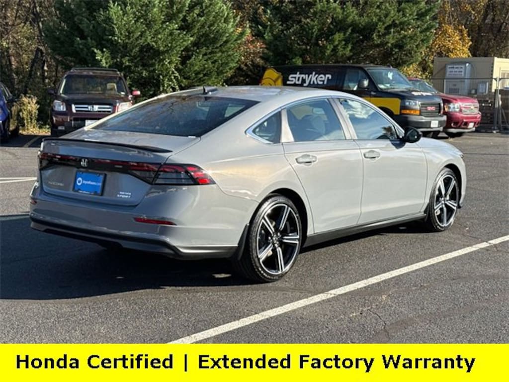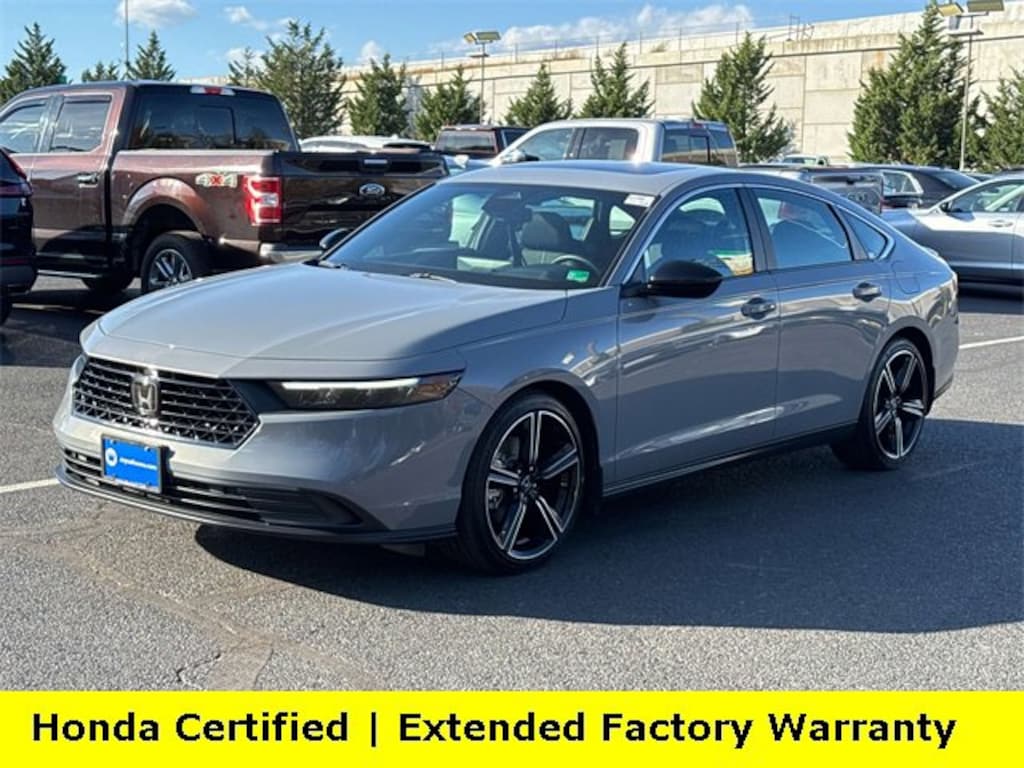 Clean CARFAX. Certified. Urban Gray Pearl 2025 Honda Accord Hybrid Sport ***ONE OWNER***, ***LOW MILES***, ***DEALER MAINTAINED***, ***EXCELLENT CONDITION***, ***HONDA CERTIFIED***, ***ADAPTIVE CRUISE CONTROL***, ***ALLOY WHEELS***, ***BACK UP CAMERA***, ***BLIND SIDE MONITORING***, ***FORWARD COLLISION ALERT***, ***LANE DEPARTURE WARNING***, ***POWER MOONROOF***, ***POWER SEAT***, ***REMOTE START***, HondaTrue Certified Certified, 2.0L I4 DOHC 16V, 4-Wheel Disc Brakes, 8 Speakers, ABS brakes, Adaptive Cruise Control: Adaptive Cruise Control (ACC) with Low-Speed Follow, Air Conditioning, Alloy wheels, AM/FM radio, Apple CarPlay/Android Auto, Auto High-beam Headlights, Automatic temperature control, Blind Spot Information (BSI) System warning, Brake assist, Bumpers: body-color, Compass, Delay-off headlights, Driver door bin, Driver vanity mirror, Dual front impact airbags, Dual front side impact airbags, Electronic Stability Control, Emergency communication system: HondaLink, Exterior Parking Camera Rear, Fabric Seat Trim, Four wheel independent suspension, Front anti-roll bar, Front Bucket Seats, Front Center Armrest, Front dual zone A/C, Front reading lights, Fully automatic headlights, Heated Front Bucket Seats, Heated front seats, Illuminated entry, Knee airbag, Lane departure: Lane Keeping Assist System (LKAS) active, Leather Shift Knob, Leather steering wheel, Low tire pressure warning, Occupant sensing airbag, Outside temperature display, Overhead airbag, Overhead console, Panic alarm, Passenger door bin, Passenger vanity mirror, Power door mirrors, Power driver seat, Power moonroof, Power steering, Power windows, Radio data system, Radio: 180-Watt Audio System, Rear anti-roll bar, Rear reading lights, Rear seat center armrest, Rear side impact airbag, Rear window defroster, Remote keyless entry, Security system, Speed control, Speed-sensing steering, Speed-Sensitive Wipers, Split folding rear seat, Spoiler, Steering wheel mounted audio controls, Telescoping steering wheel, Tilt steering wheel, Traction control, Trip computer, Variably intermittent wipers, Wheels: 19 x 8.5J Berlina Black, 2.0L I4 DOHC 16V.
