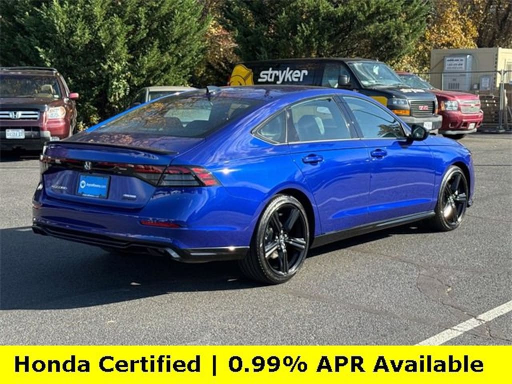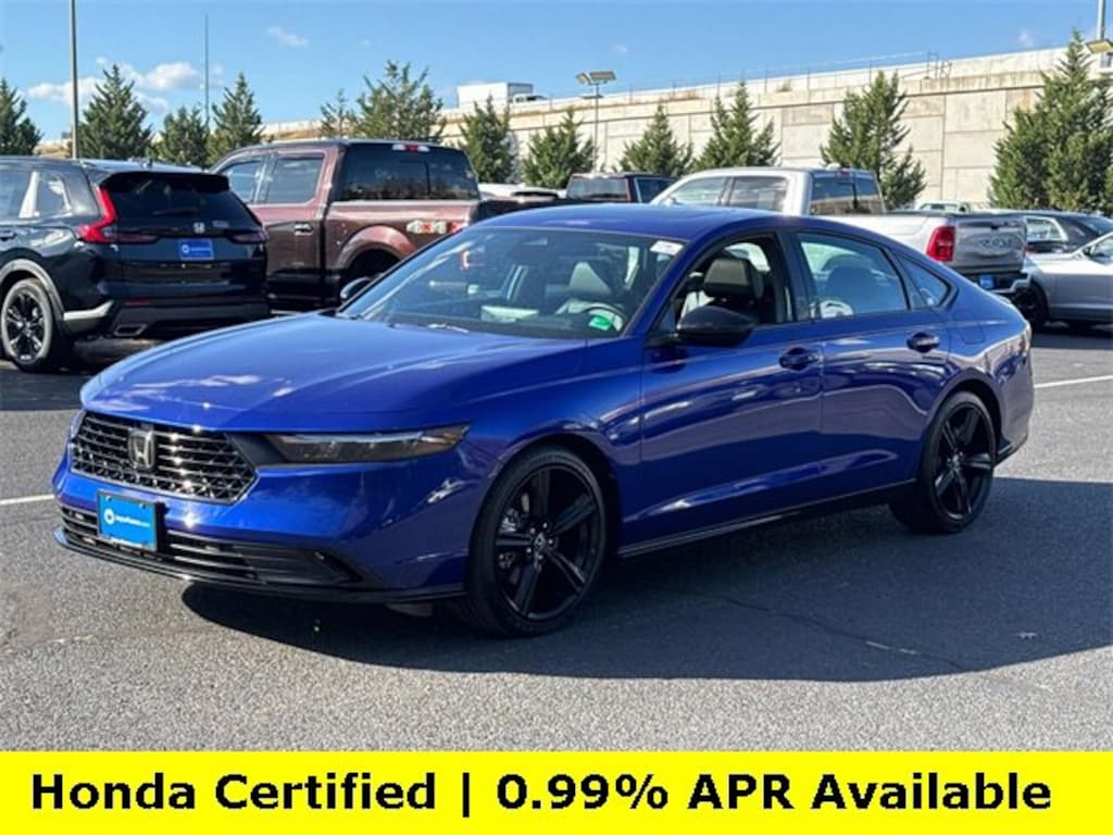 CARFAX One-Owner. Clean CARFAX. Certified. Still Night Pearl 2025 Honda Accord Hybrid Sport-L ***ONE OWNER***, ***LOW MILES***, ***DEALER MAINTAINED***, ***EXCELLENT CONDITION***, ***HONDA CERTIFIED***, ***ADAPTIVE CRUISE CONTROL***, ***ALLOY WHEELS***, ***BACK UP CAMERA***, ***BLIND SIDE MONITORING***, ***FORWARD COLLISION ALERT***, ***LANE DEPARTURE WARNING***, ***HEATED SEATS***, ***LEATHER***, ***POWER MOONROOF***, ***POWER SEATS***, ***REMOTE START***, HondaTrue Certified Certified, 2.0L I4 DOHC 16V, 4-Wheel Disc Brakes, 8 Speakers, ABS brakes, Adaptive Cruise Control: Adaptive Cruise Control (ACC) with Low-Speed Follow, Air Conditioning, Alloy wheels, AM/FM radio, Apple CarPlay/Android Auto, Auto High-beam Headlights, Automatic temperature control, Blind Spot Information (BSI) System warning, Brake assist, Bumpers: body-color, Compass, Delay-off headlights, Driver door bin, Driver vanity mirror, Dual front impact airbags, Dual front side impact airbags, Electronic Stability Control, Emergency communication system: HondaLink, Exterior Parking Camera Rear, Four wheel independent suspension, Front anti-roll bar, Front Bucket Seats, Front Center Armrest, Front dual zone A/C, Front reading lights, Fully automatic headlights, Heated Front Bucket Seats, Heated front seats, Illuminated entry, Knee airbag, Lane departure: Lane Keeping Assist System (LKAS) active, Leather Shift Knob, Leather steering wheel, Leather-Trimmed Seat Trim, Low tire pressure warning, Memory seat, Occupant sensing airbag, Outside temperature display, Overhead airbag, Overhead console, Panic alarm, Passenger door bin, Passenger vanity mirror, Power door mirrors, Power driver seat, Power moonroof, Power passenger seat, Power steering, Power windows, Radio data system, Radio: 180-Watt Audio System, Rear anti-roll bar, Rear reading lights, Rear seat center armrest, Rear side impact airbag, Rear window defroster, Remote keyless entry, Security system, Speed control, Speed-sensing steering, Speed-Sensitive Wipers, Split folding rear seat, Spoiler, Steering wheel mounted audio controls, Telescoping steering wheel, Tilt steering wheel, Traction control, Trip computer, Variably intermittent wipers, Wheels: 19 x 8.5J Matte Berlina Black, 2.0L I4 DOHC 16V.Here is another hand selected pre owned vehicle from Joyce Koons Honda Buick GMC. Odometer is 5726 miles below market average! 46/41 City/Highway MPGHondaTrue Certified Details:* Vehicle History* 182 Point Inspection* Transferable Warranty* Vehicles purchased within New Vehicle Limited Warranty period: extends New Vehicle Limited Warranty to 5 years*/60,000 miles*. Honda Care Roadside Assistance for 2 year/100,000 miles (whichever occurs first). Up to two complimentary oil changes within the first year of ownership. SiriusXM 90-Day Trial.* Warranty Deductible: $0* Roadside Assistance* Powertrain Limited Warranty: 84 Month/100,000 Mile (whichever comes first) from original in-service date* Limited Warranty: 24 Month/100,000 Mile (whichever comes first) after new car warranty expires or from certified purchase date
