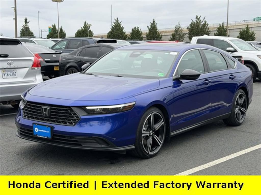 CARFAX One-Owner. Certified. Still Night Pearl 2025 Honda Accord Hybrid Sport ***ONE OWNER***, ***LOW MILES***, ***DEALER MAINTAINED***, ***EXCELLENT CONDITION***, ***HONDA CERTIFIED***, ***ADAPTIVE CRUISE CONTROL***, ***ALLOY WHEELS***, ***BACK UP CAMERA***, ***BLIND SIDE MONITORING***, ***FORWARD COLLISION ALERT***, ***LANE DEPARTURE WARNING***, ***POWER MOONROOF***, ***POWER SEAT***, ***REMOTE START***, HondaTrue Certified Certified, 2.0L I4 DOHC 16V, 4-Wheel Disc Brakes, 8 Speakers, ABS brakes, Adaptive Cruise Control: Adaptive Cruise Control (ACC) with Low-Speed Follow, Air Conditioning, Alloy wheels, AM/FM radio, Apple CarPlay/Android Auto, Auto High-beam Headlights, Automatic temperature control, Blind Spot Information (BSI) System warning, Brake assist, Bumpers: body-color, Compass, Delay-off headlights, Driver door bin, Driver vanity mirror, Dual front impact airbags, Dual front side impact airbags, Electronic Stability Control, Emergency communication system: HondaLink, Exterior Parking Camera Rear, Fabric Seat Trim, Four wheel independent suspension, Front anti-roll bar, Front Bucket Seats, Front Center Armrest, Front dual zone A/C, Front reading lights, Fully automatic headlights, Heated Front Bucket Seats, Heated front seats, Illuminated entry, Knee airbag, Lane departure: Lane Keeping Assist System (LKAS) active, Leather Shift Knob, Leather steering wheel, Low tire pressure warning, Occupant sensing airbag, Outside temperature display, Overhead airbag, Overhead console, Panic alarm, Passenger door bin, Passenger vanity mirror, Power door mirrors, Power driver seat, Power moonroof, Power steering, Power windows, Radio data system, Radio: 180-Watt Audio System, Rear anti-roll bar, Rear reading lights, Rear seat center armrest, Rear side impact airbag, Rear window defroster, Remote keyless entry, Security system, Speed control, Speed-sensing steering, Speed-Sensitive Wipers, Split folding rear seat, Spoiler, Steering wheel mounted audio controls, Telescoping steering wheel, Tilt steering wheel, Traction control, Trip computer, Variably intermittent wipers, Wheels: 19 x 8.5J Berlina Black, 2.0L I4 DOHC 16V.